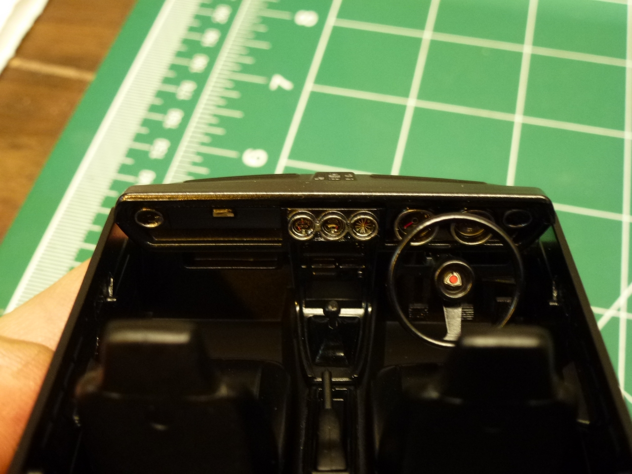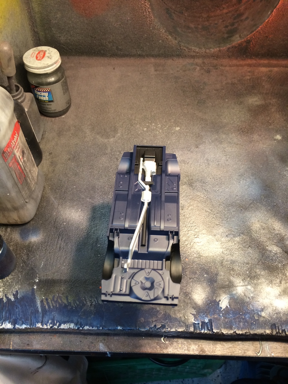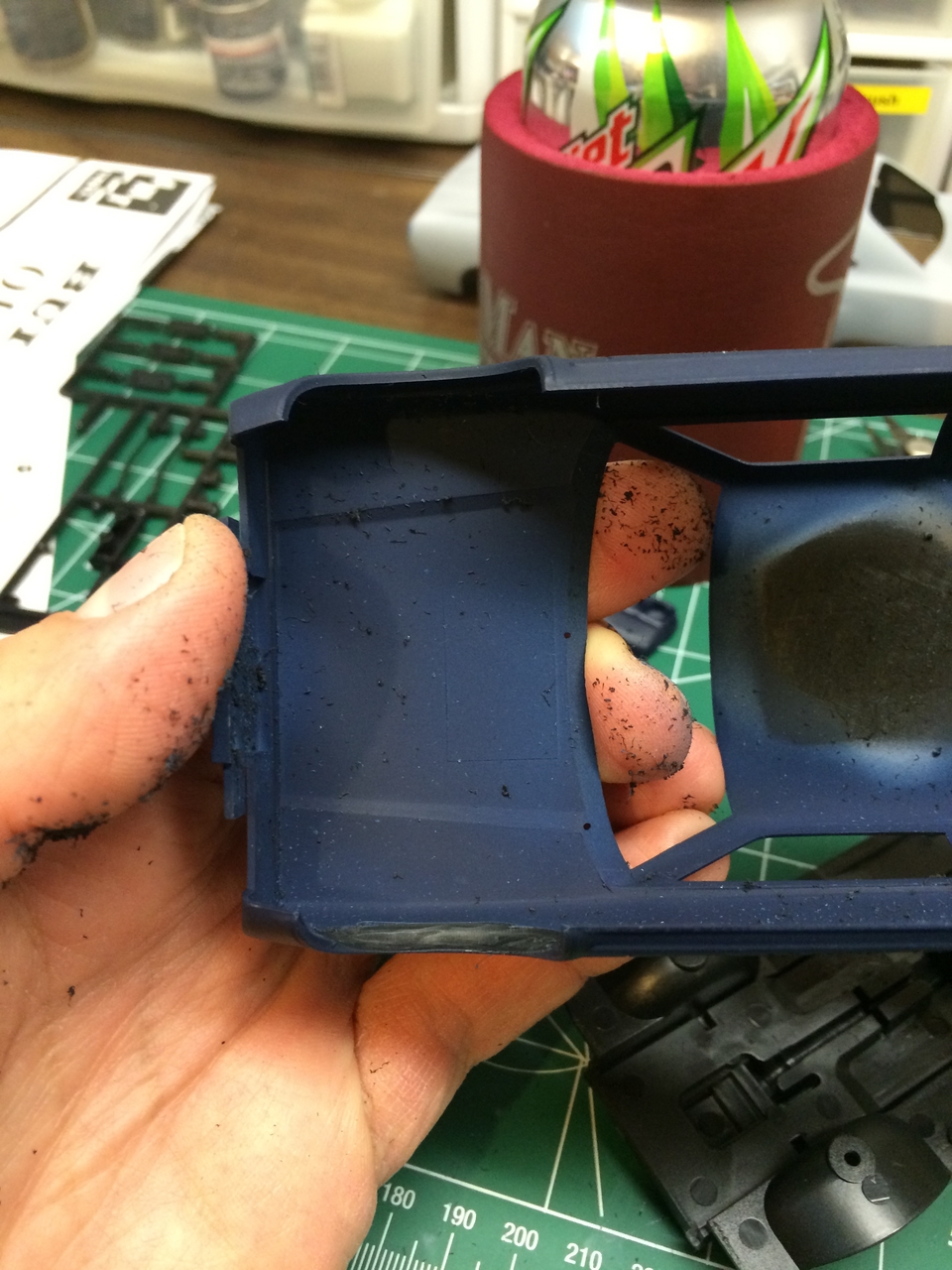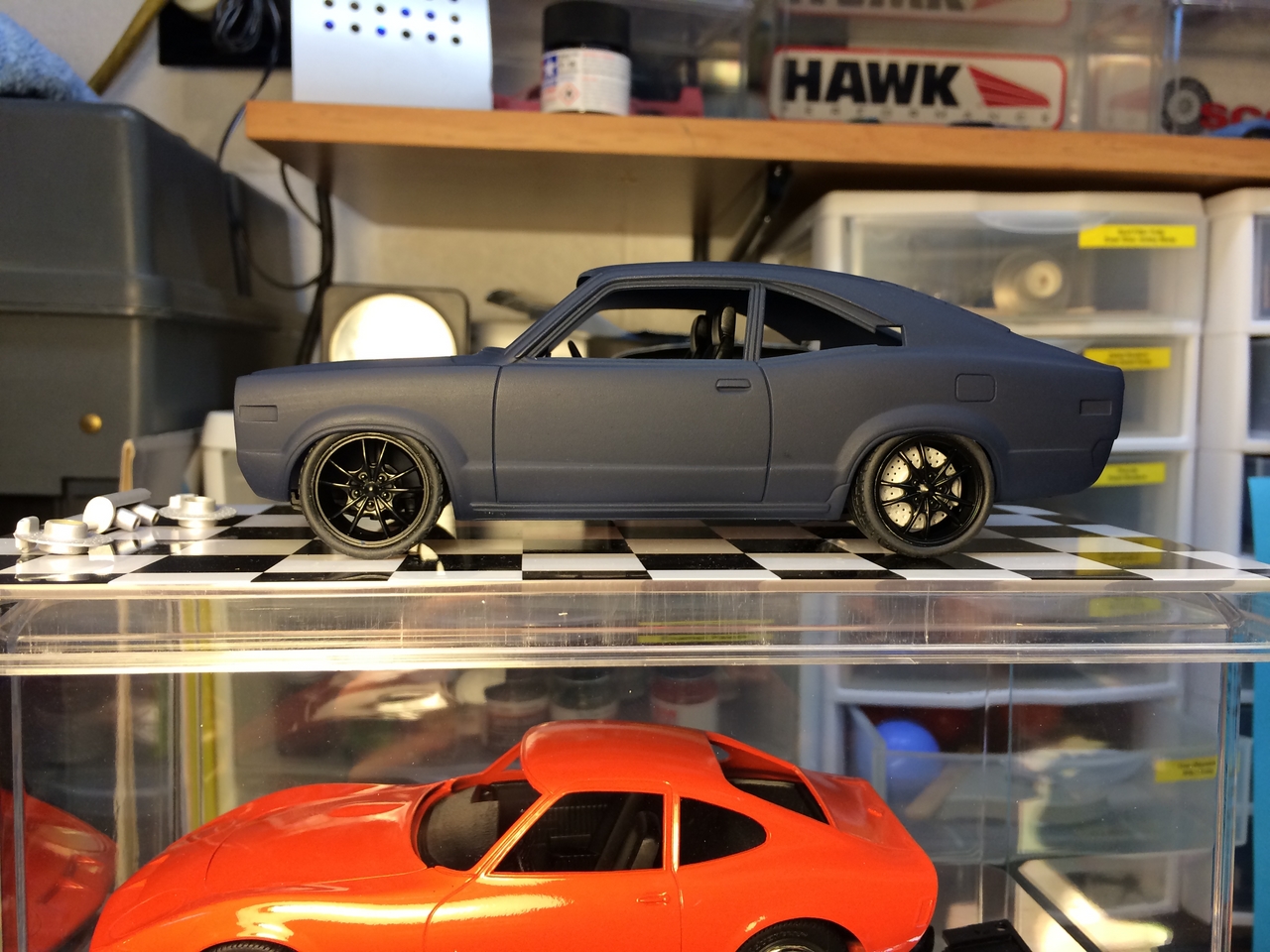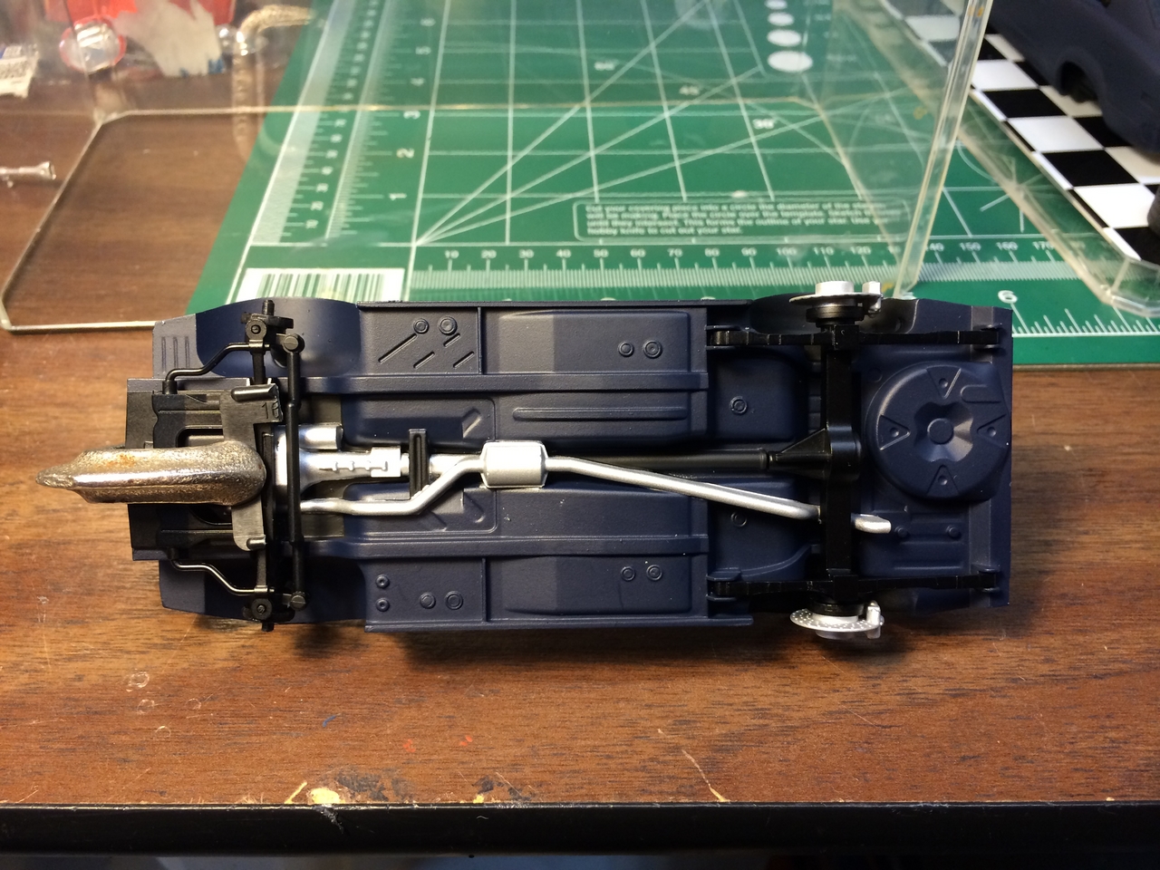 The kit is painted a flat dark blue and is sealed with satin clear. I found a picture of a similar era Toyota painted the same way and knew how I wanted the model to look. I was able to mount a set of Pegasus wheels by grinding out the wheel wells, inner and outer. The look of the new wheels gives the car a very aggressive look. The ride height is un-modified which was as very sweet surprise.