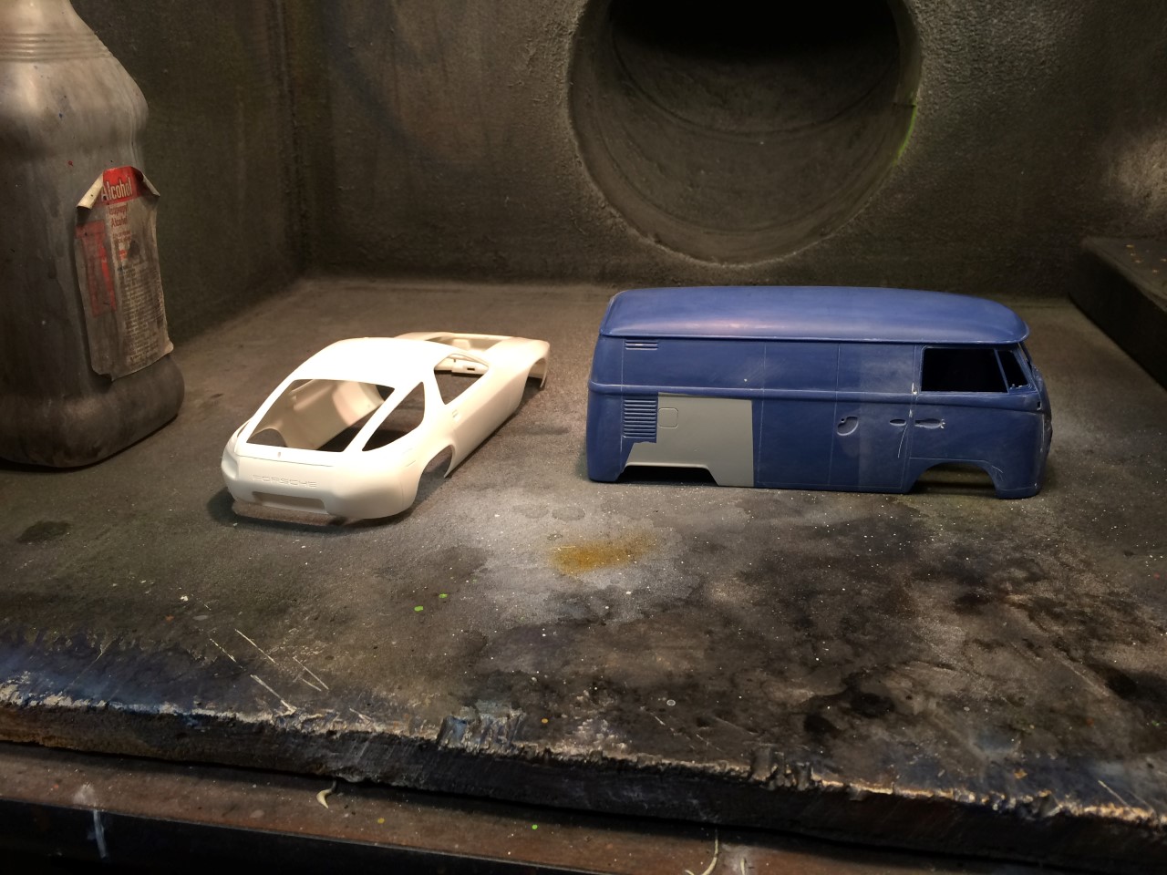 Shortly after, I used the JB weld to fix the VW bus body work and start the body work on the “hemi” charger.
