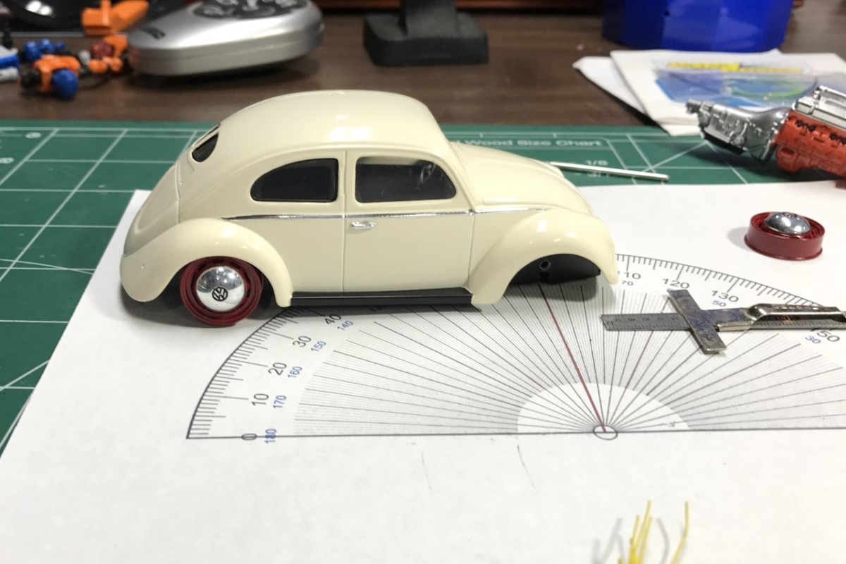 Beyond that sad note, I did make small progress through the month. I made new axles for the bug that would hold the new wheels and modified the chassis tub to lower the suspension. A friend of mine tried to cast resin wheels which I would drill to use the larger VW bus wheels. The resin wheels weren’t going to work as I had hoped. My second plan was to find 1/32 slot car tires. More to come on that issues.