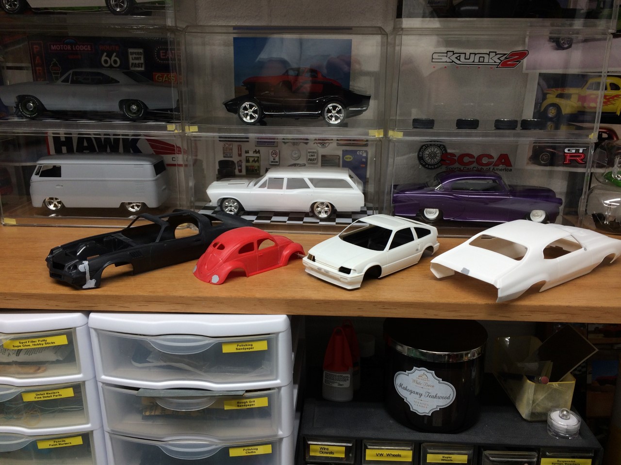 For the most part, the body is shaped well. There were virtually no panel lines for the hood and trunk. I carefully scribed several new panel lines to help improve the look of the kit. I also elected to shave the trim on the hood as well as a few other small details that didn’t look quite right. One other detail involved moving the locating indentations for the tail lights. They weren’t in the right spot. After filling them in, I did my best to eyeball the correct location using reference photos and drilling shallow holes to locate the tail lights after paint.