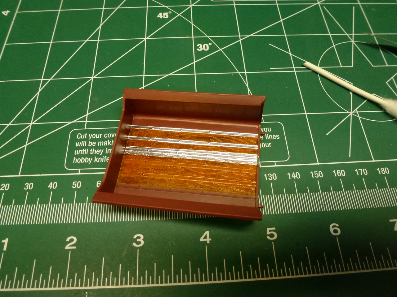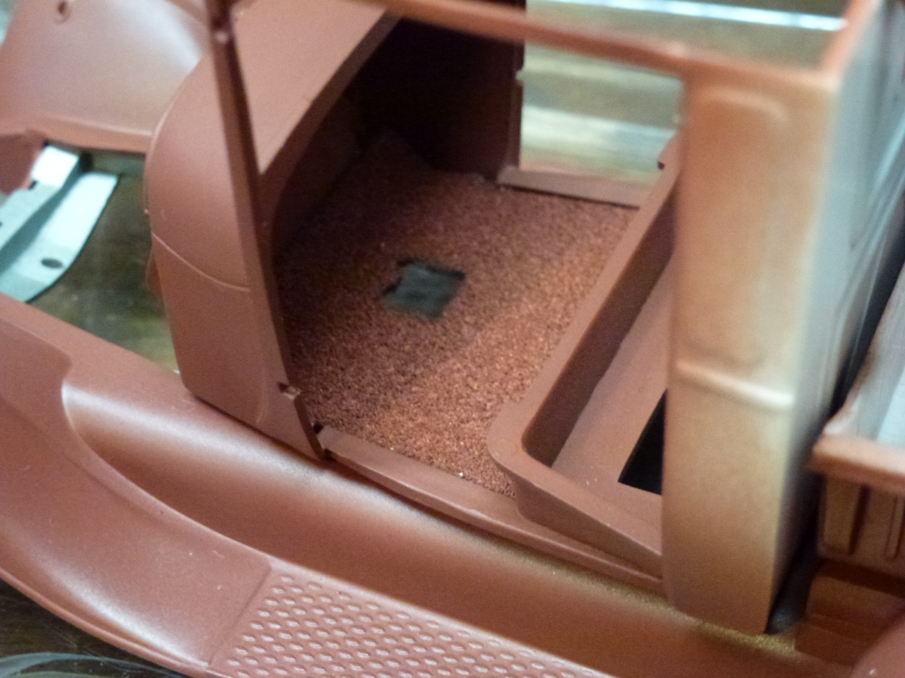 I also used embossing powder to simulate a carpeted floor in the cab.