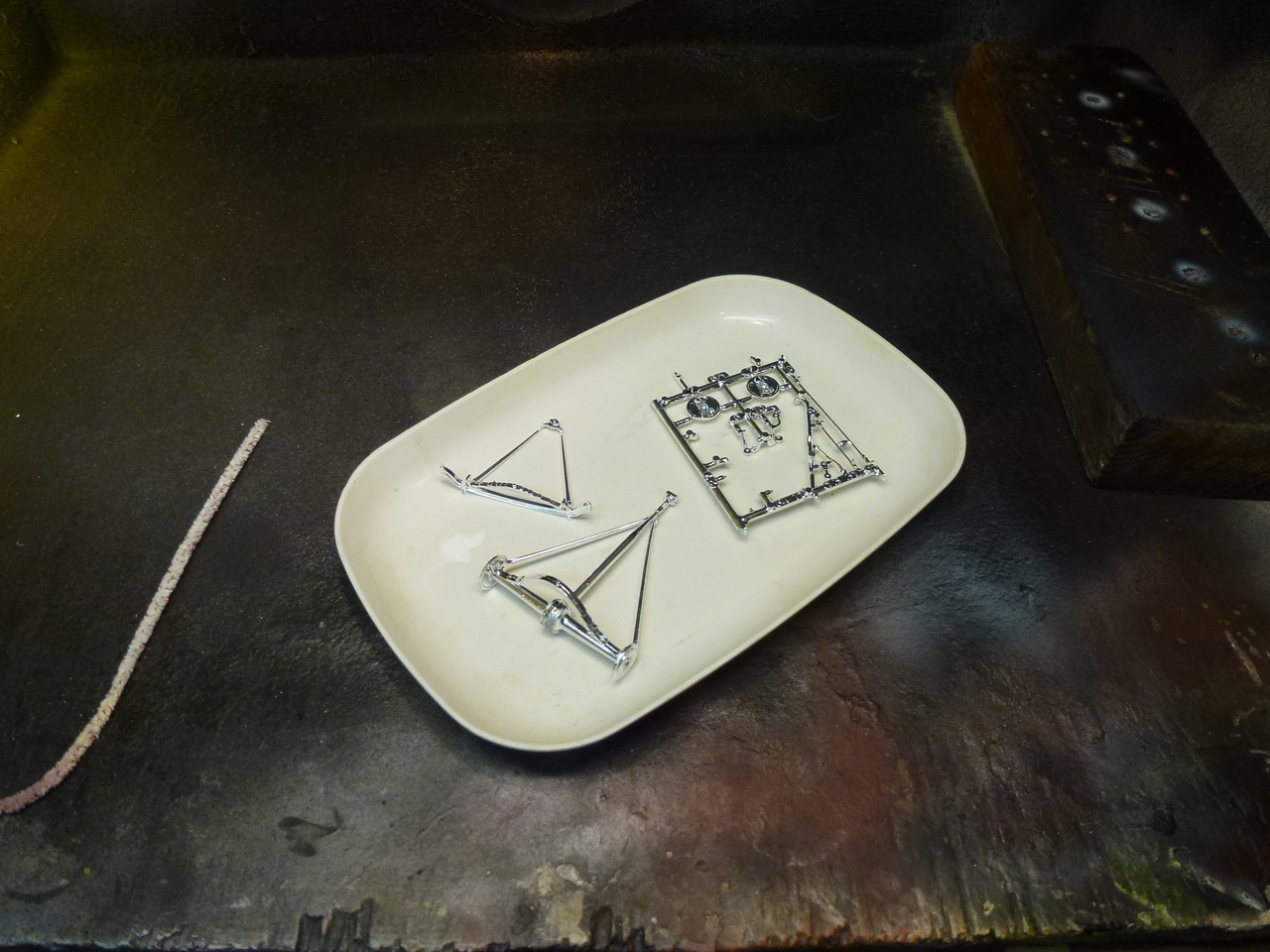As much as chrome suits an old truck like this, most of the parts, including the chrome plated parts, had an incredible amount flashing and mold lines. I decided to de-chrome most of the parts and paint them aluminum.