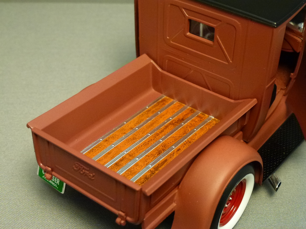 My first attempt at a wood grain finish was a success! I used a technique that I read about in Scale Auto Magazine and finished it with Bare Metal Foil for the straps. I’m very pleased with the final results.