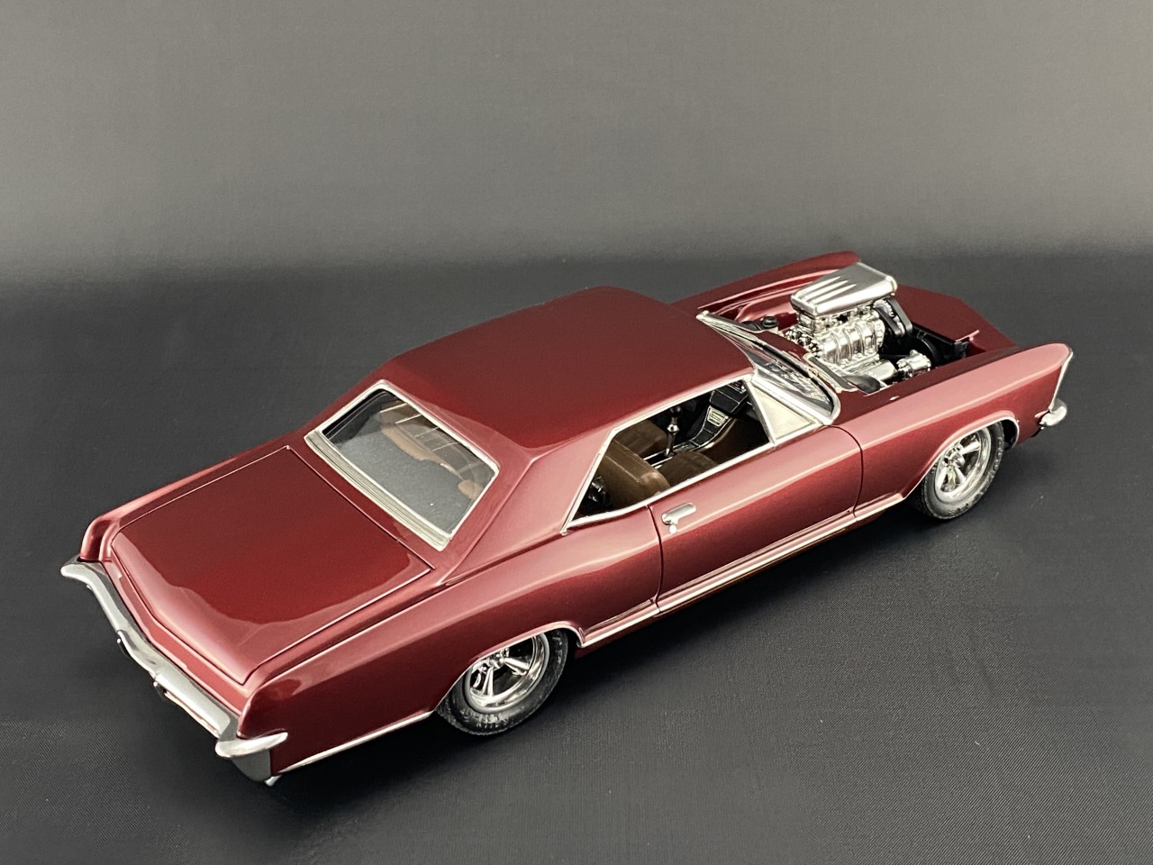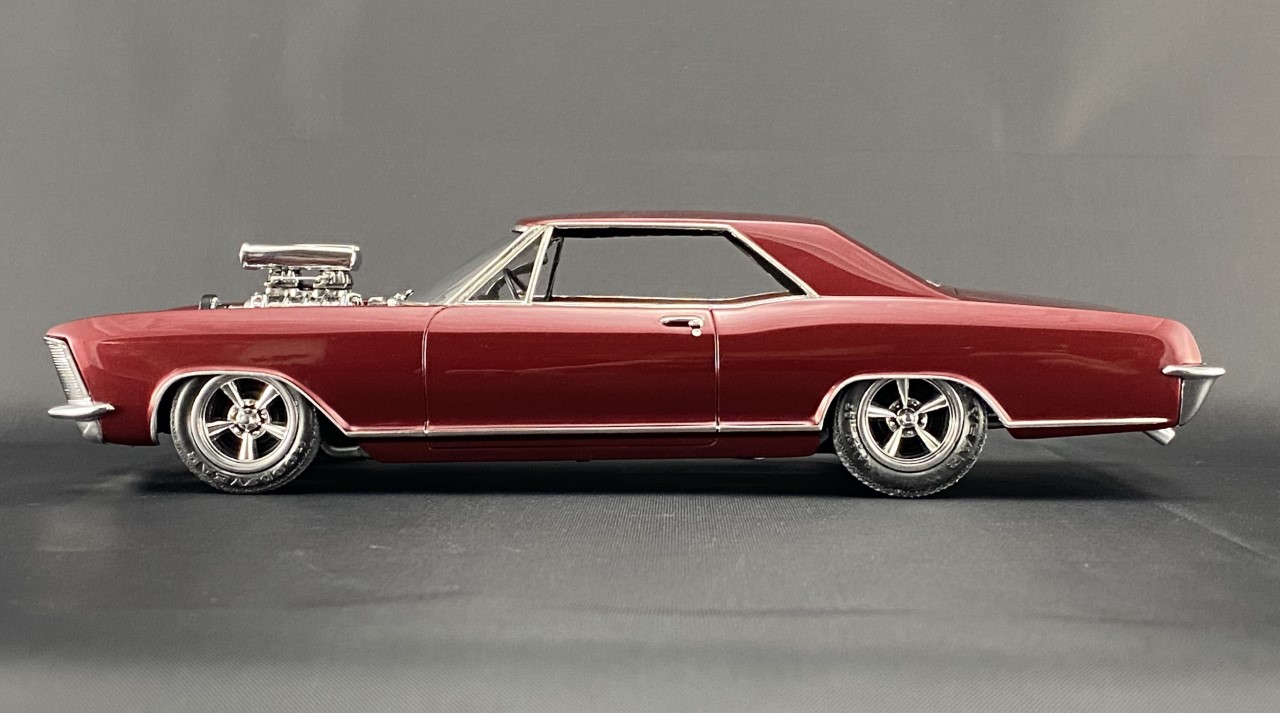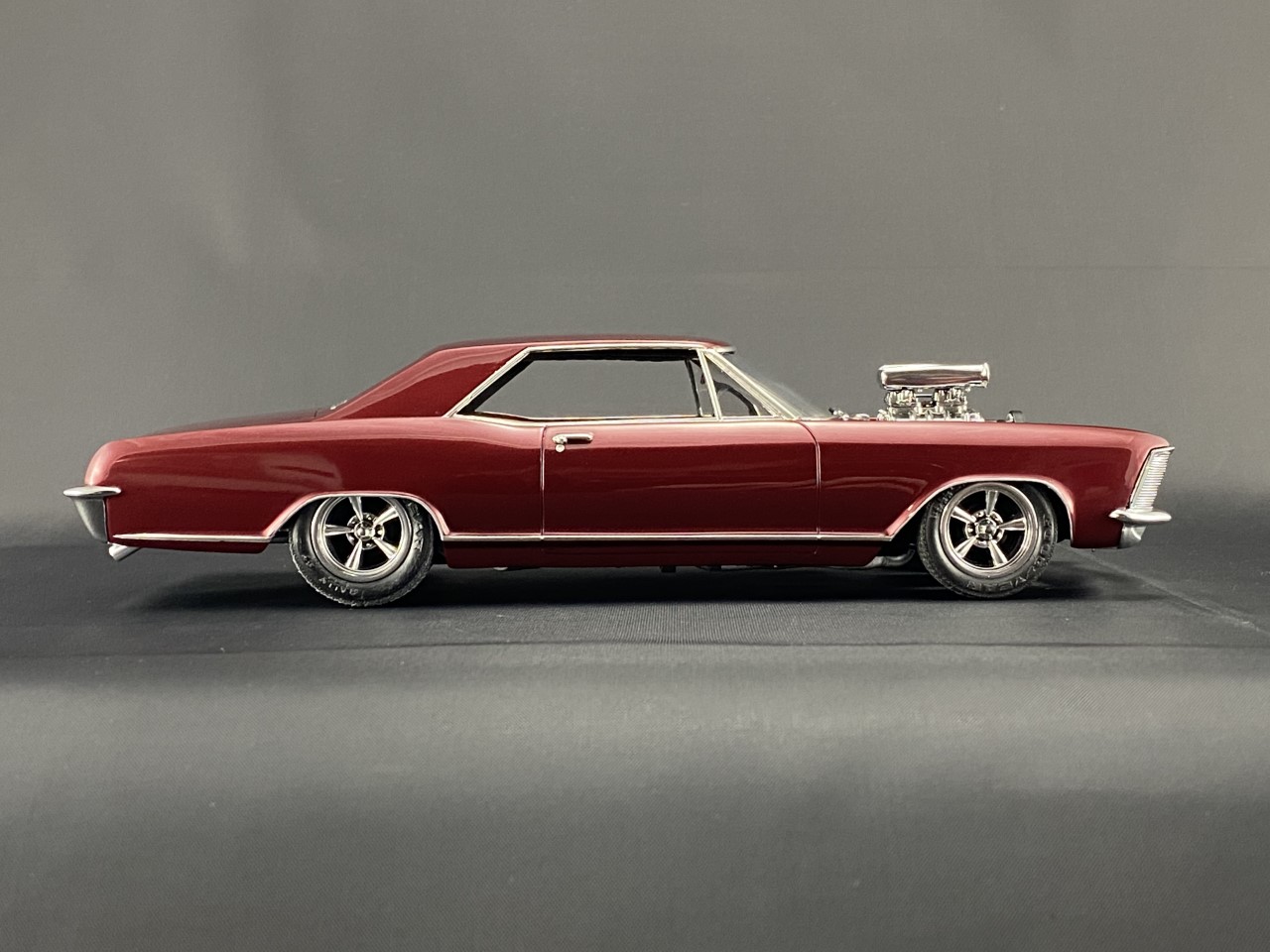Without a doubt, this has to be one of my favorite builds. That’s saying a lot since I have many builds which I love! What makes this one special? First, the idea of saving a long forgotten project from the trash. Next, the Riviera is a great looking car from it’s time. Lastly, considering the body itself is completely unchanged, the engine, wheels, stance and color give the build a menacing appearance. I just love it!