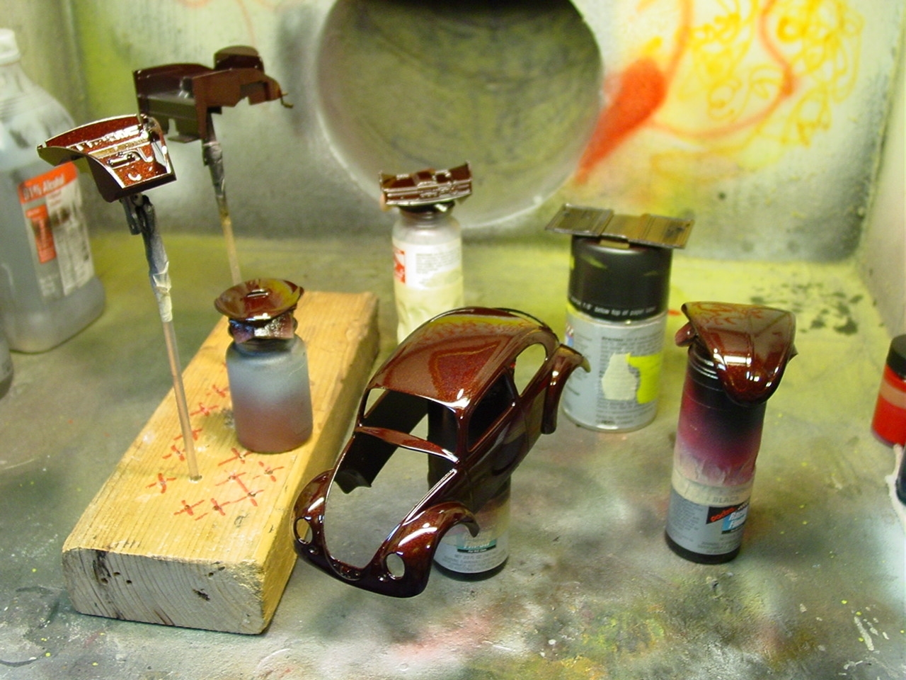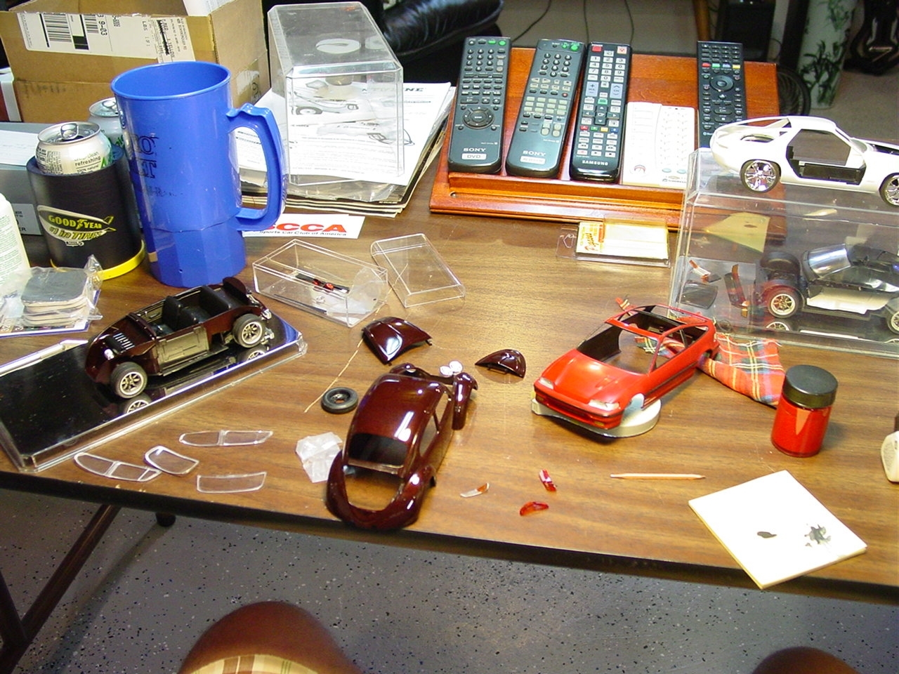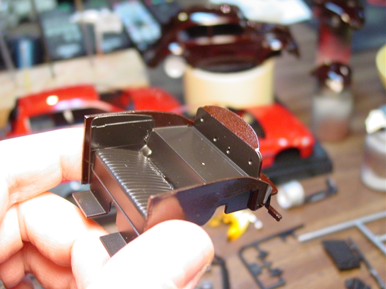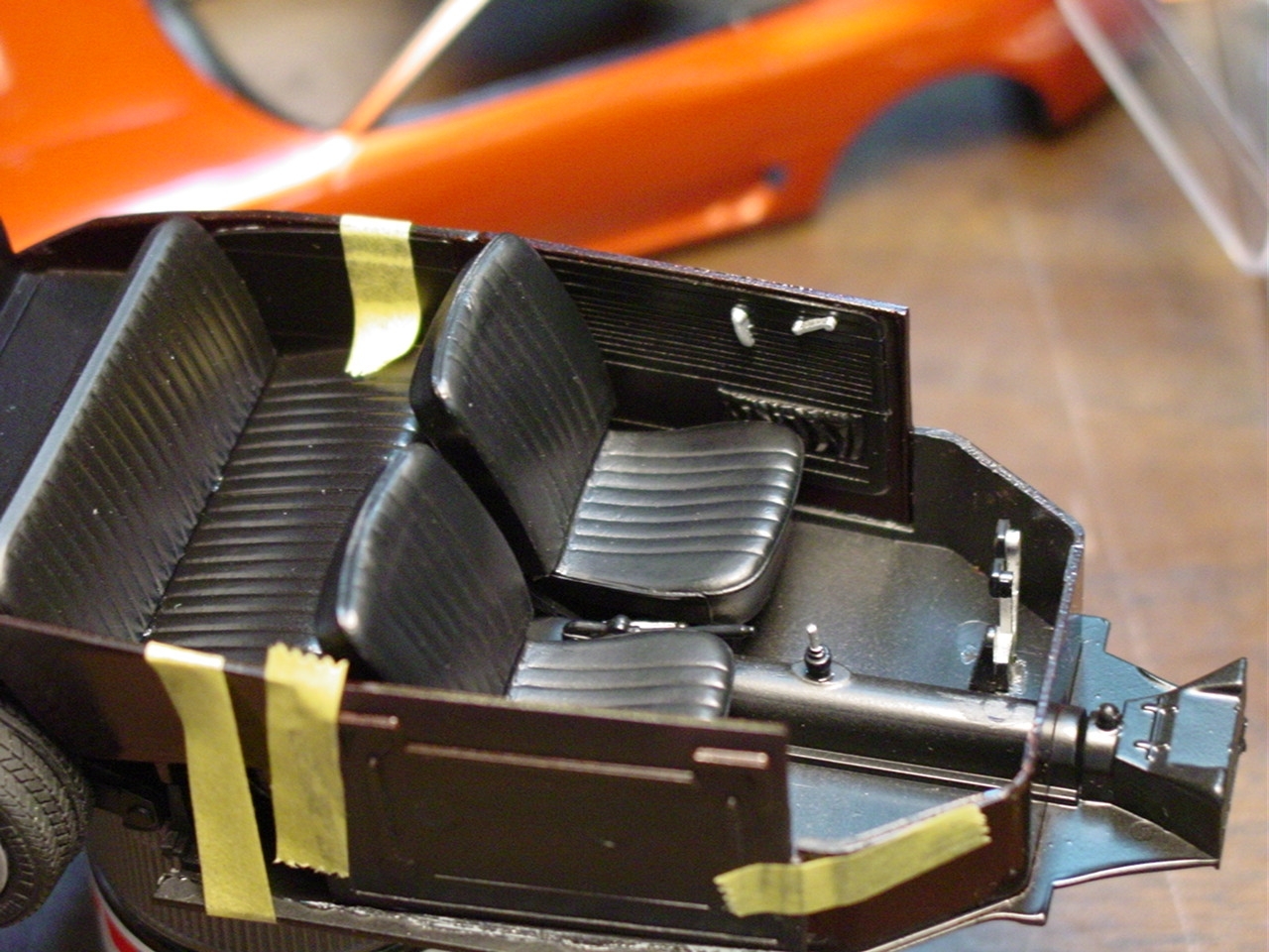 Fundamentally, there was nothing wrong with this kit.  It turned out really well.  As with most restoration and rebuild projects, I will find a way to make it even better.  My original intention with this kit was to detail paint the wheels.  Since the wheels were glued in place, I was gong to have pull the kit apart.  While pulling it apart, I realized that I never painted the trim on the windows.  As I was popping out the windows, I chipped the paint.  Rather than touch up the paint and move on, I elected to respray the kit.  I eventually decided to add more detail to the kit by painting more of the interior and under hood/engine cover details.  The paint is Testor’s Metallic Red with a black base coat.  The black base gives the metallic red the black cherry look.  This will also be my first project to include bare metal foil for window trim.