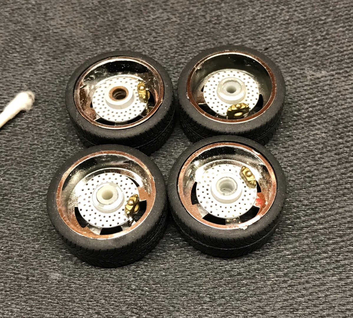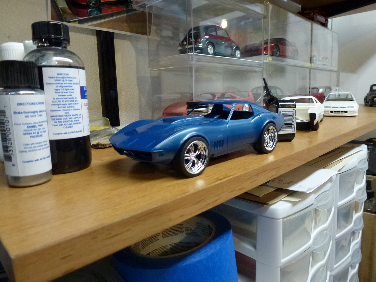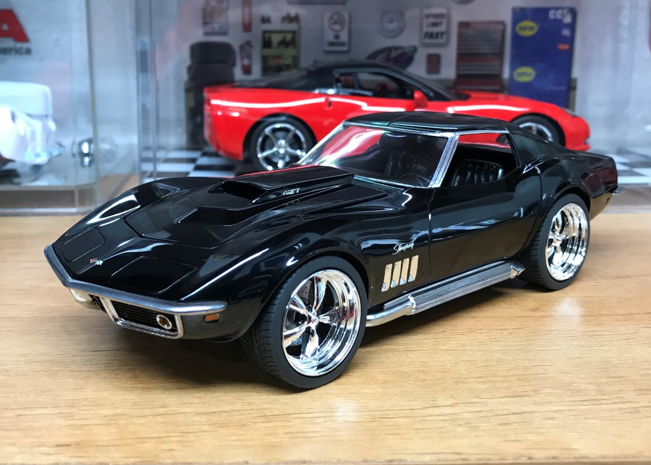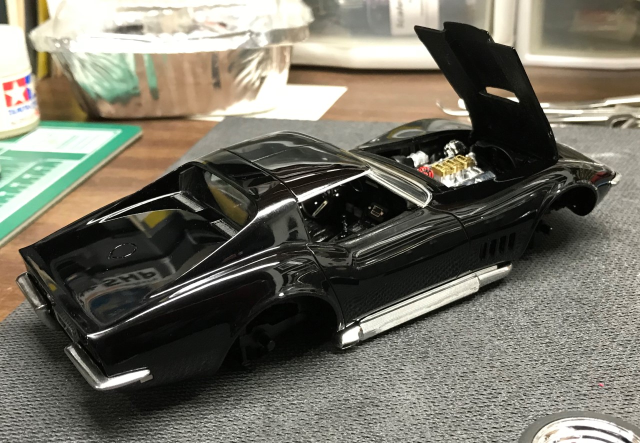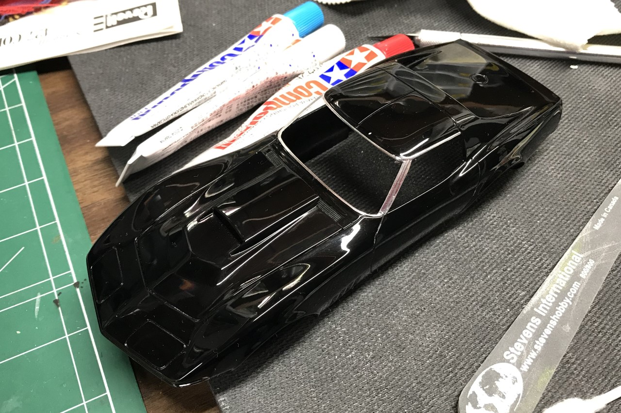 I found a picture online of this Vette painted in black with black ralley wheels. I tried finding Chevy ralley wheels without center caps but didn’t have any luck. I decided to stick with the Pegasus wheels and black for the color.