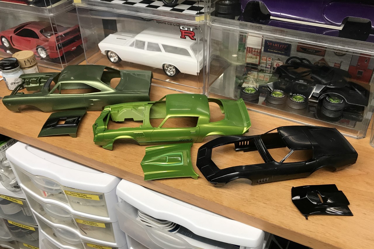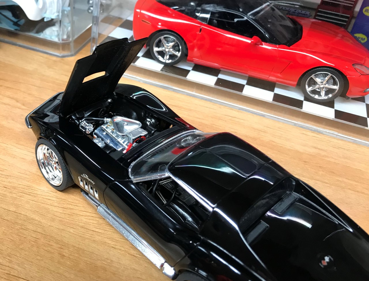 Long ago, in my early years of working at a local hobby shop, a friend of my brother’s stopped in and asked what model my brother would like as a birthday gift. We settled on this Vette. My brother had built a few models when he was young but he never had a chance to build this kit. It ended up in my stash and sat there for nearly twenty years. A few years ago, I mocked the kit with a set of Pegasus wheels and found the motivation to start the build.