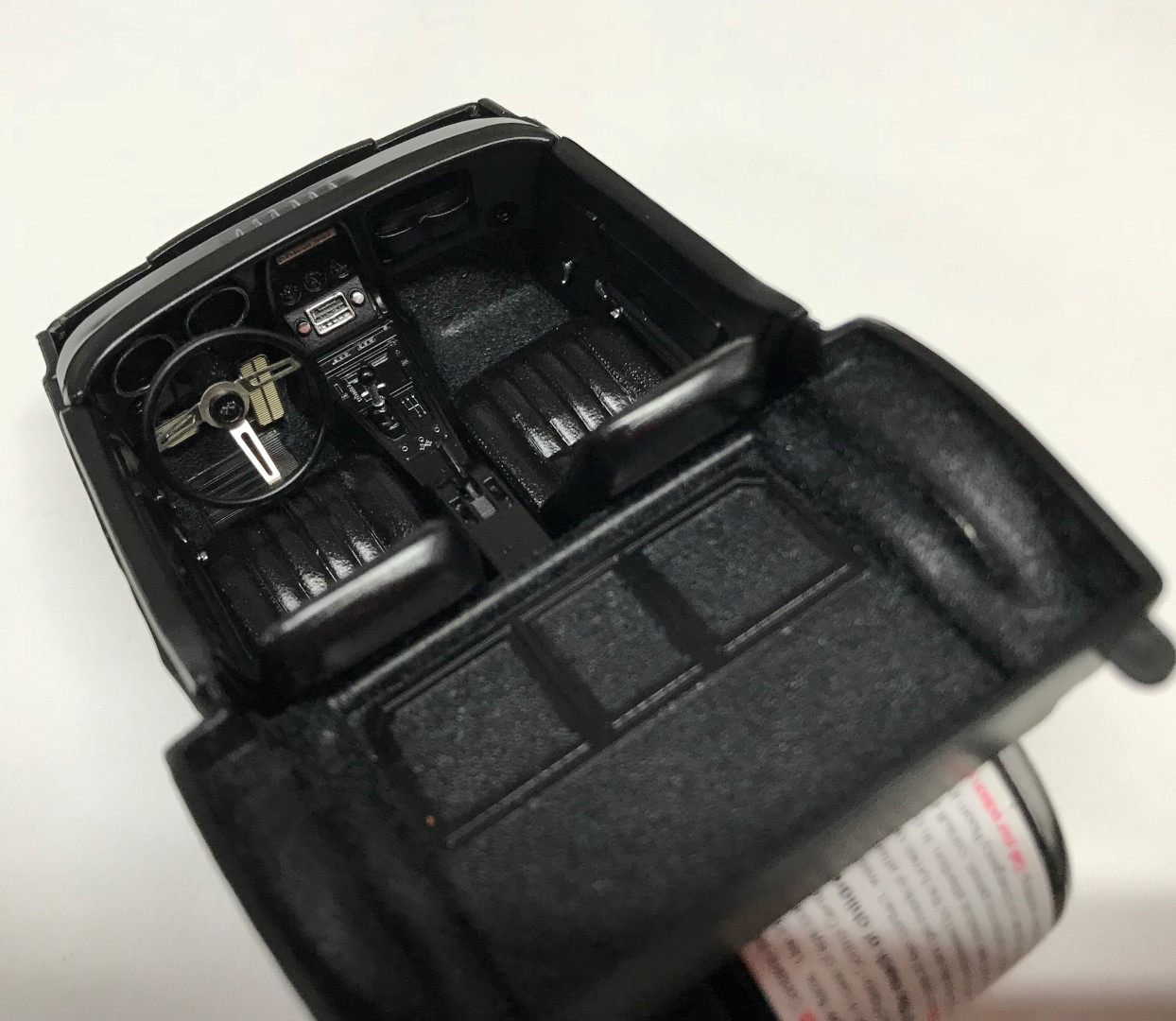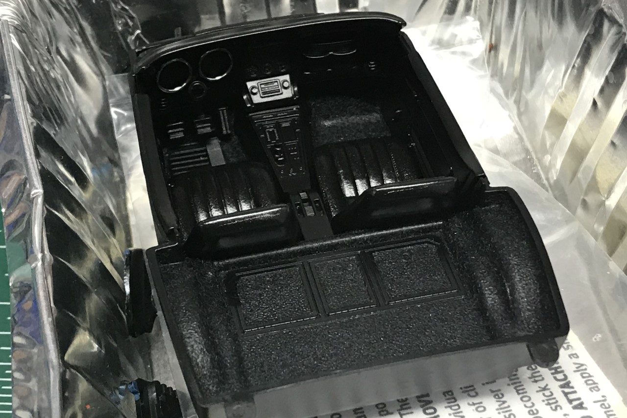 In the nearly 25 years that I’ve been airbrushing my models, I’ve always avoided black. I was intimidated by the fact that any mistakes will be really obvious. It was time to give it a try! I sprayed it with decanted Tamiya gloss black and used decanted Tamiya clear.
