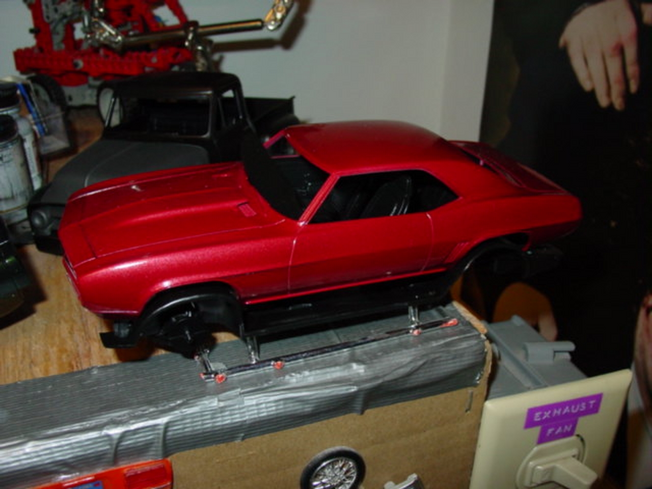 For the most part, this is a box stock build. I chose Testors metallic red for the paint. I sprayed it over a grey primer and it turned into a slightly pink color.