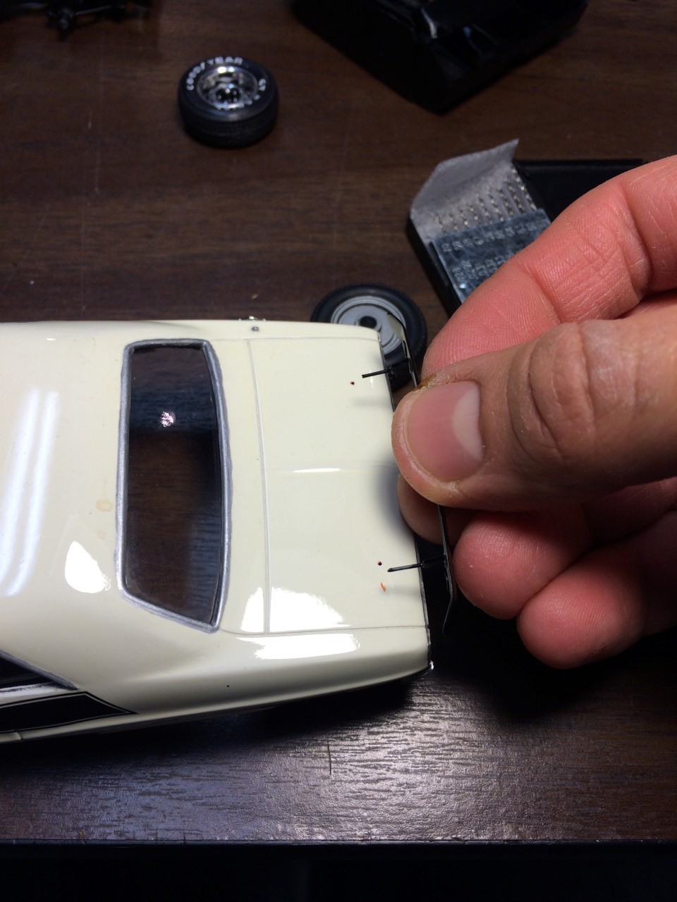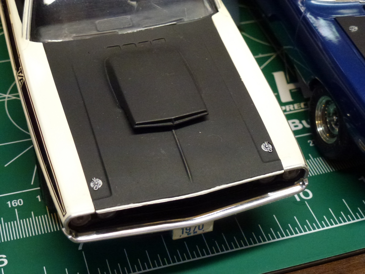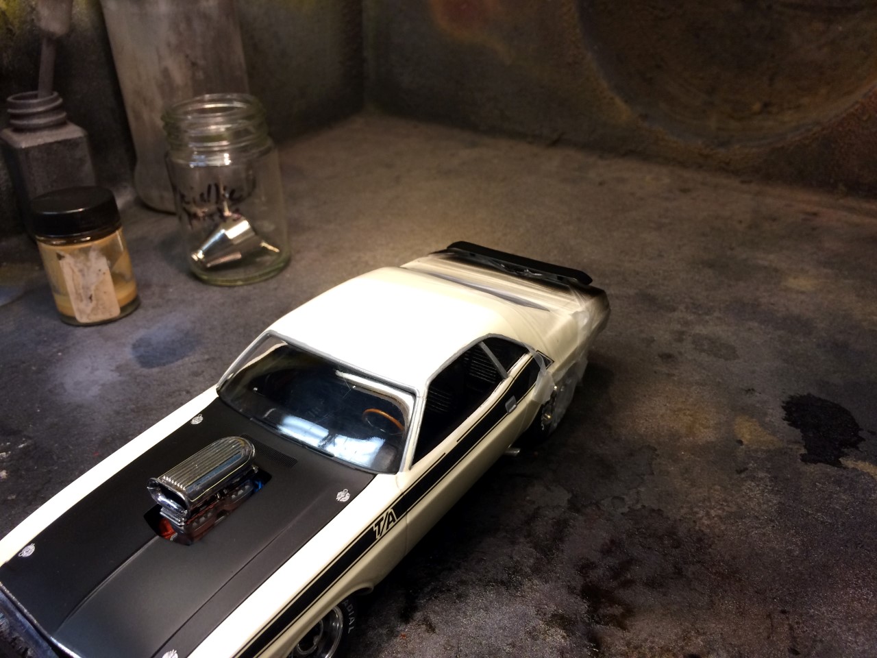 The final detail was adding the wing from the donor kit. I would have loved using a T/A wing but I didn’t have one. This would do. Using a trick I read in Scale Auto, I drilled and pinned the wing which allowed me to easily attach it cleanly to the deck lid.