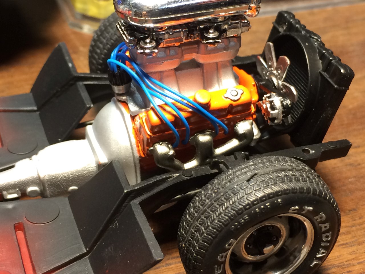 After that, I finished the engine and used computer hard drive cable for the spark plug wires. I had the wire and thought I would give it a shot. It’s a little thicker than scale but I think it turned out well.