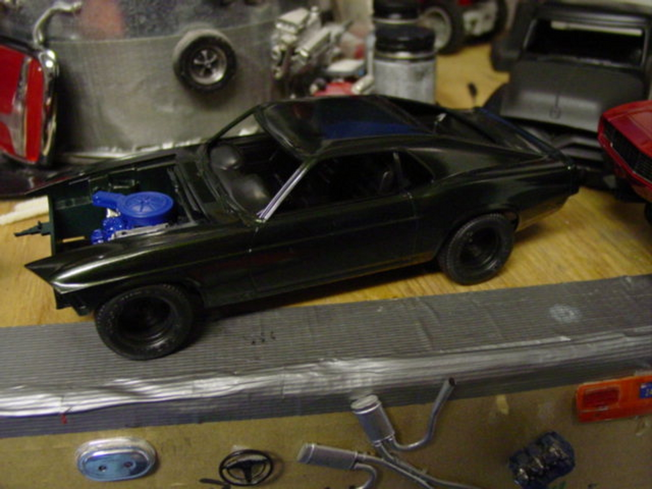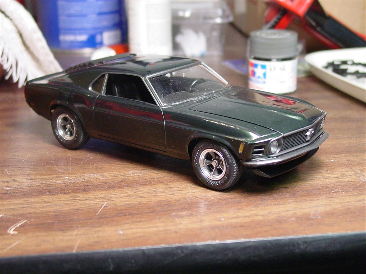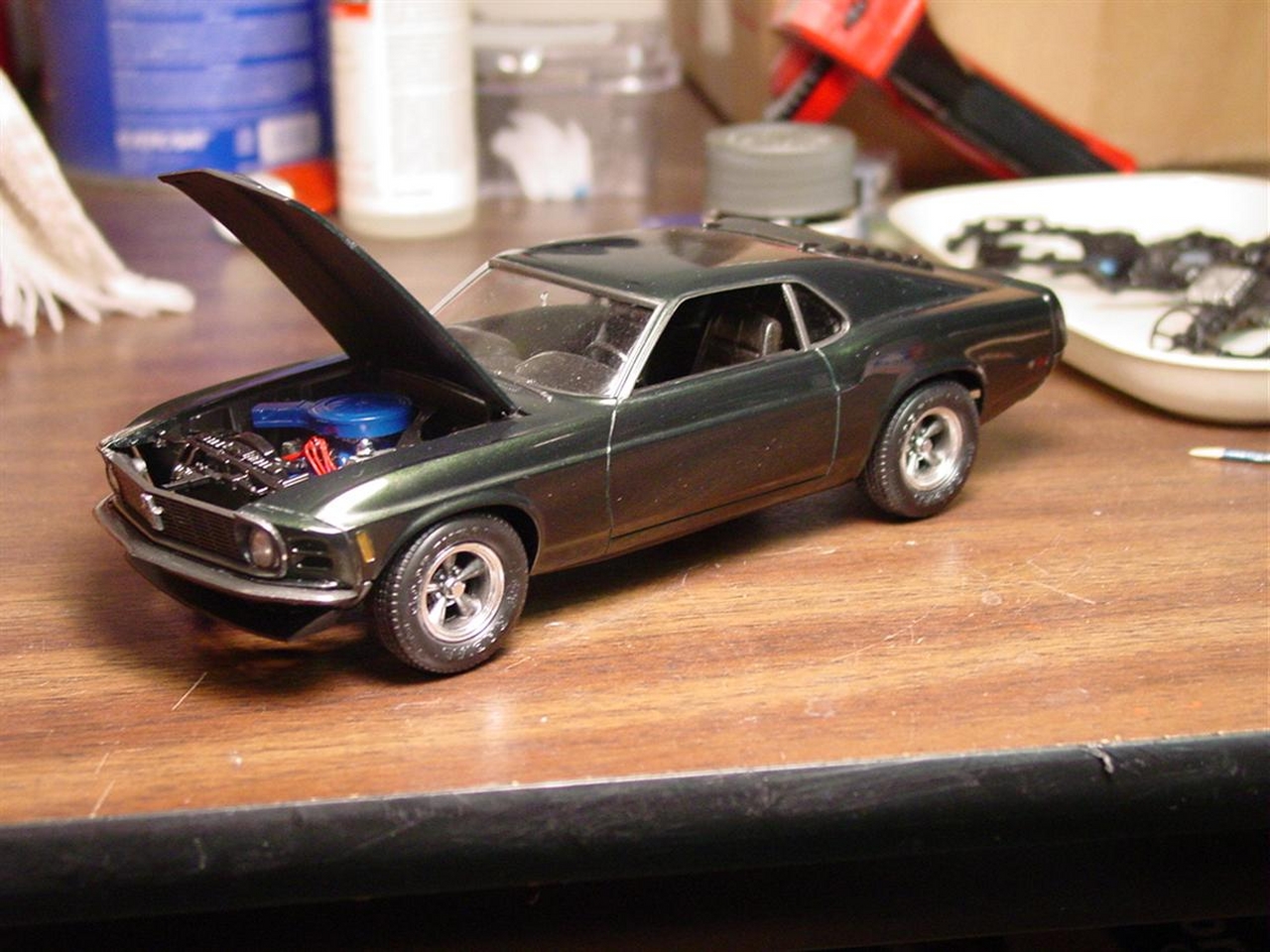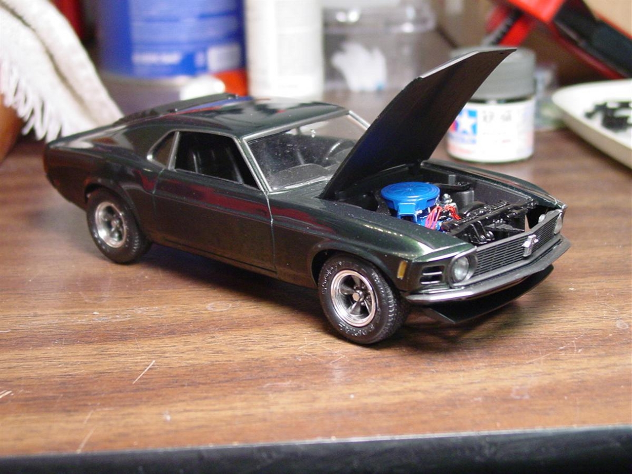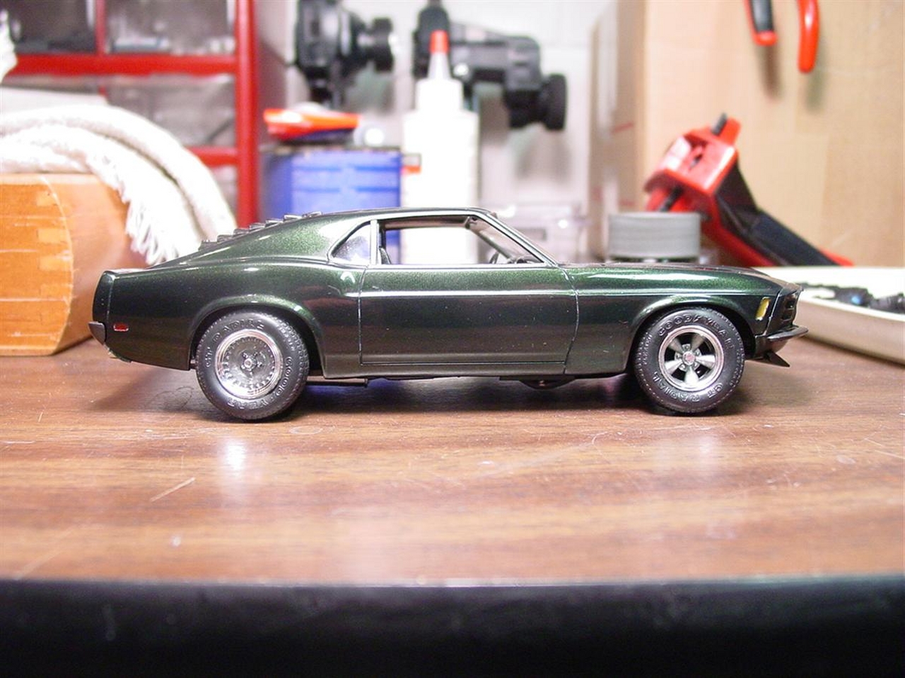 When I originally built this mustang, I opted to paint every chrome part a dark gunmetal. It made for a sinister looking mustang along with the British racing green paint. Years later, while I was preparing a set of wheels for my ’71 ‘Cuda, I decided to try them out on this Mustang. I was so impressed by how it looked that I prepared another set for the Mustang. I also added a bit of silver trim as well. The final result is stunning.