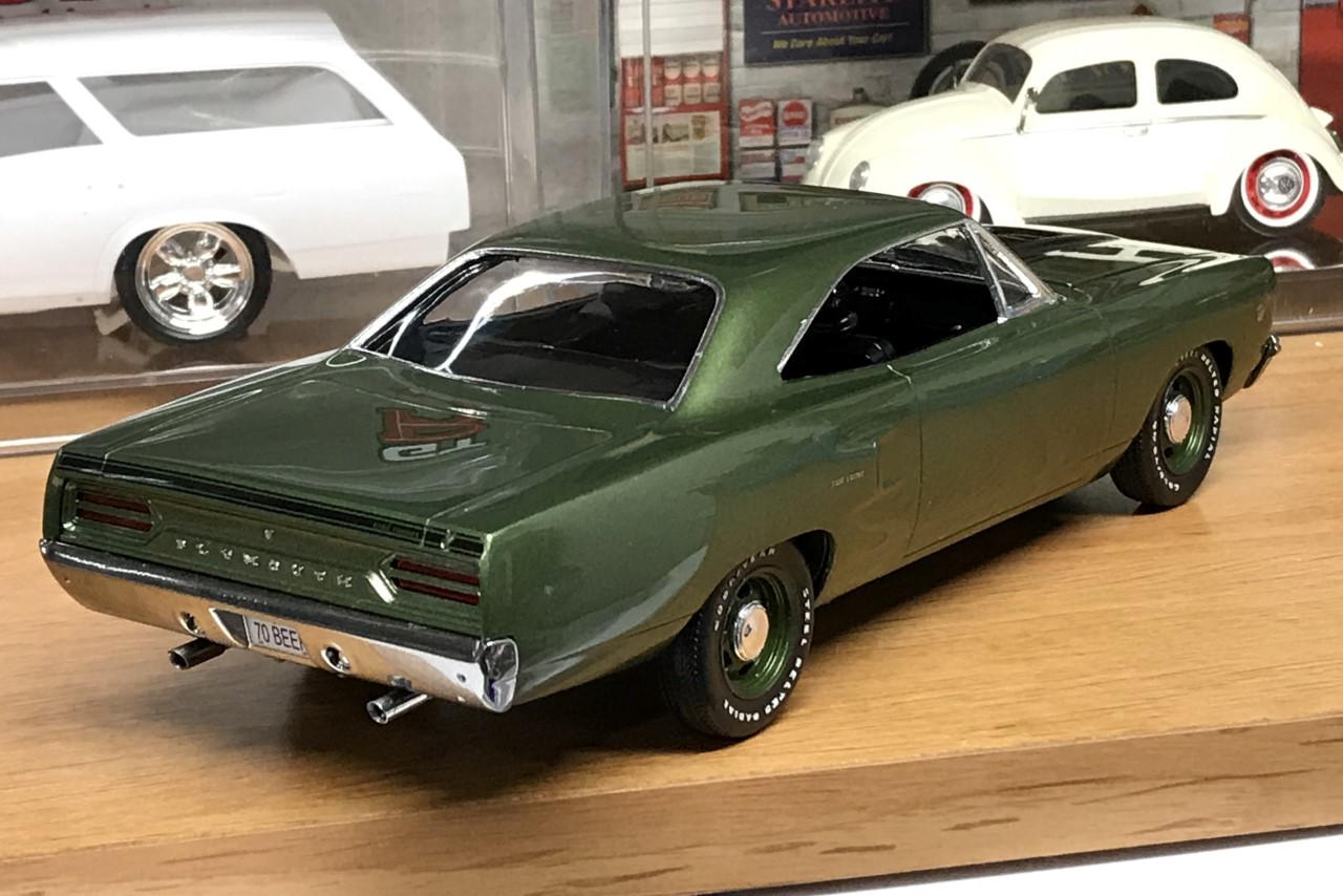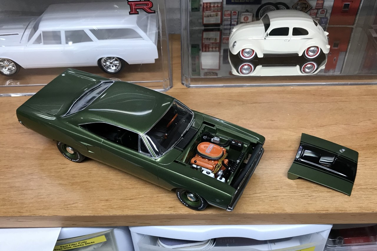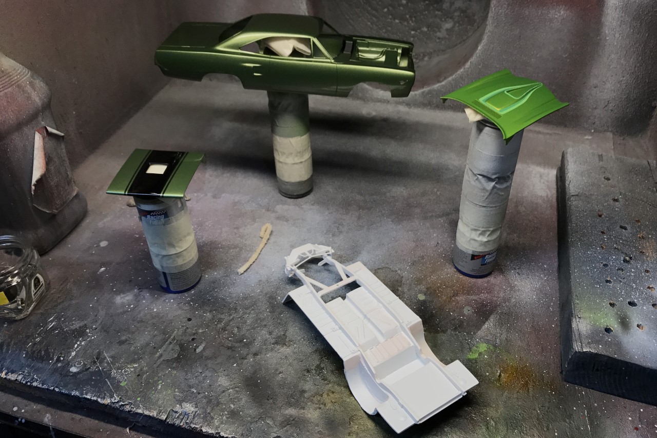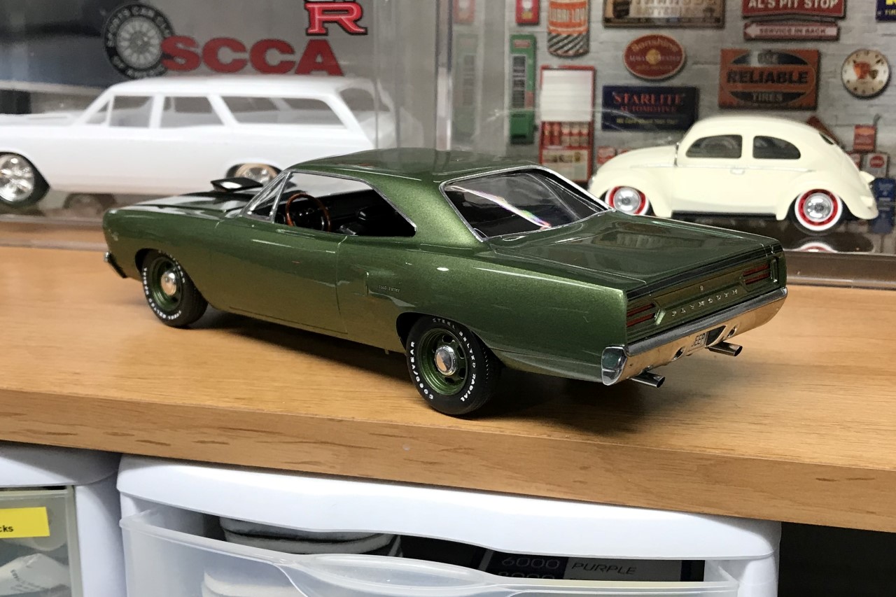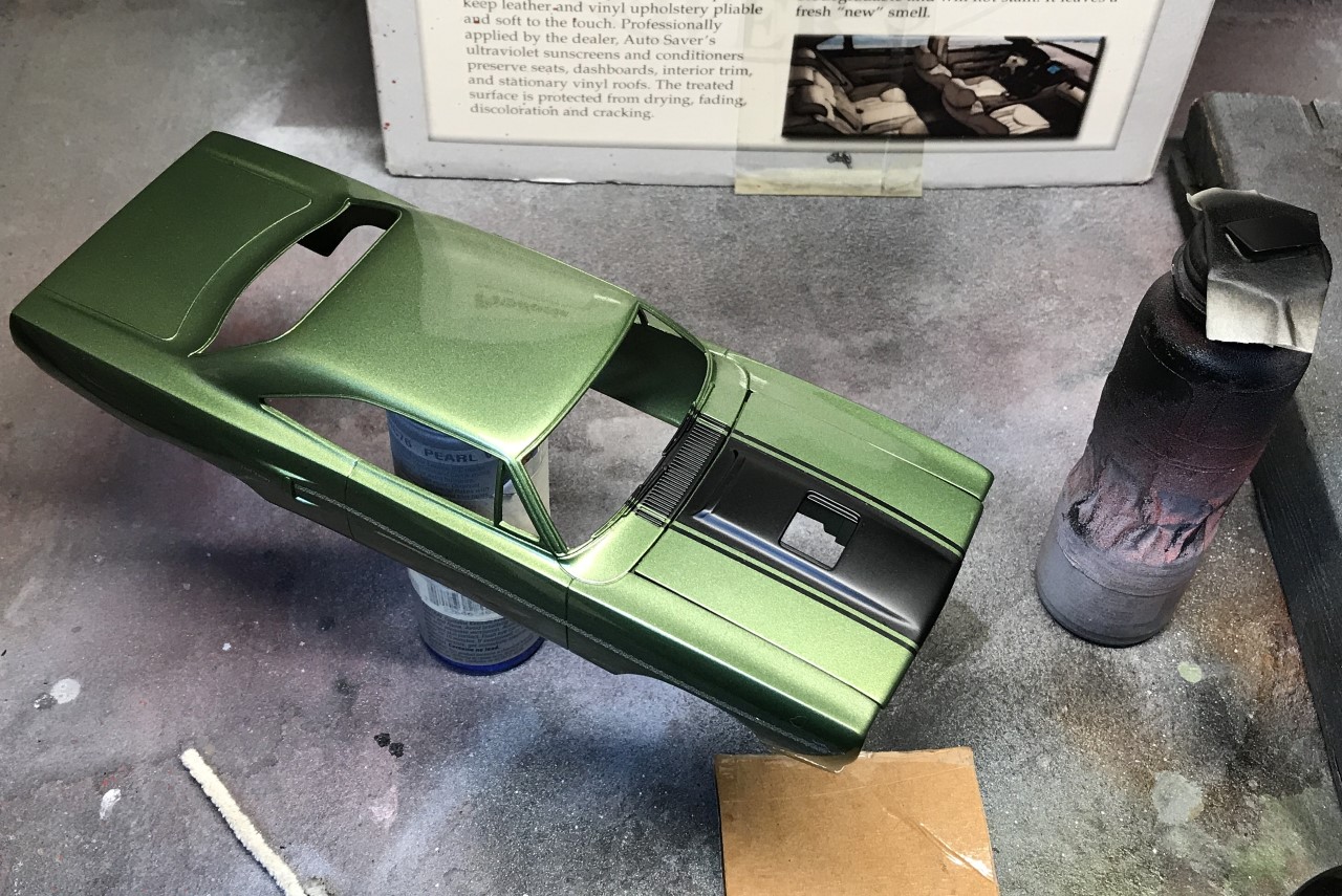 Fast forward several more years, I pulled the Roadrunner out and committed to finishing it. As I was going through the parts and trying to figure out what color I wanted to paint it, I decided that I wanted to use an OEM color. After researching the color options for the 70 Roadrunner, I elected to paint it F8 Dark Green Metallic. I ordered paint from Scale Finishes.