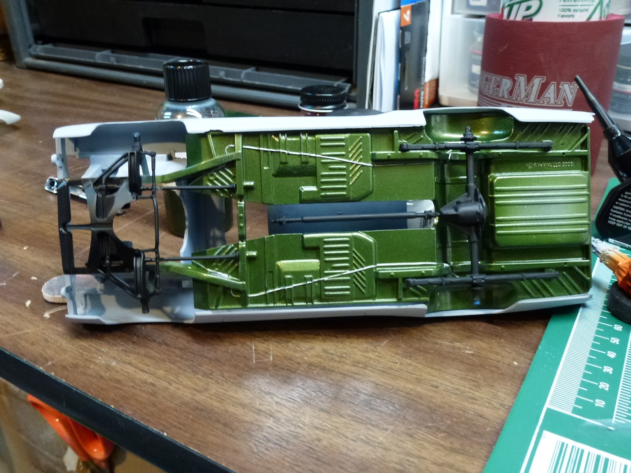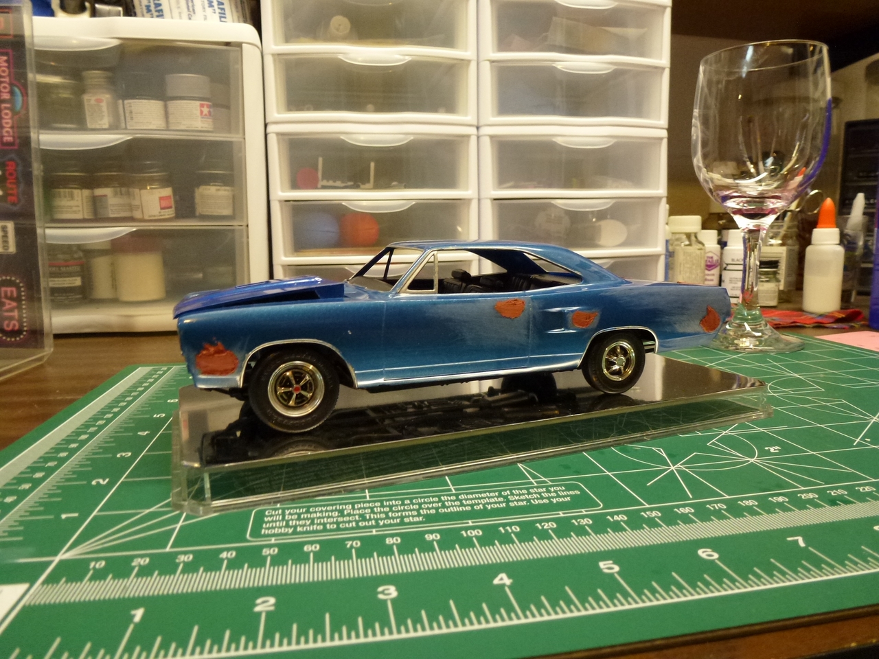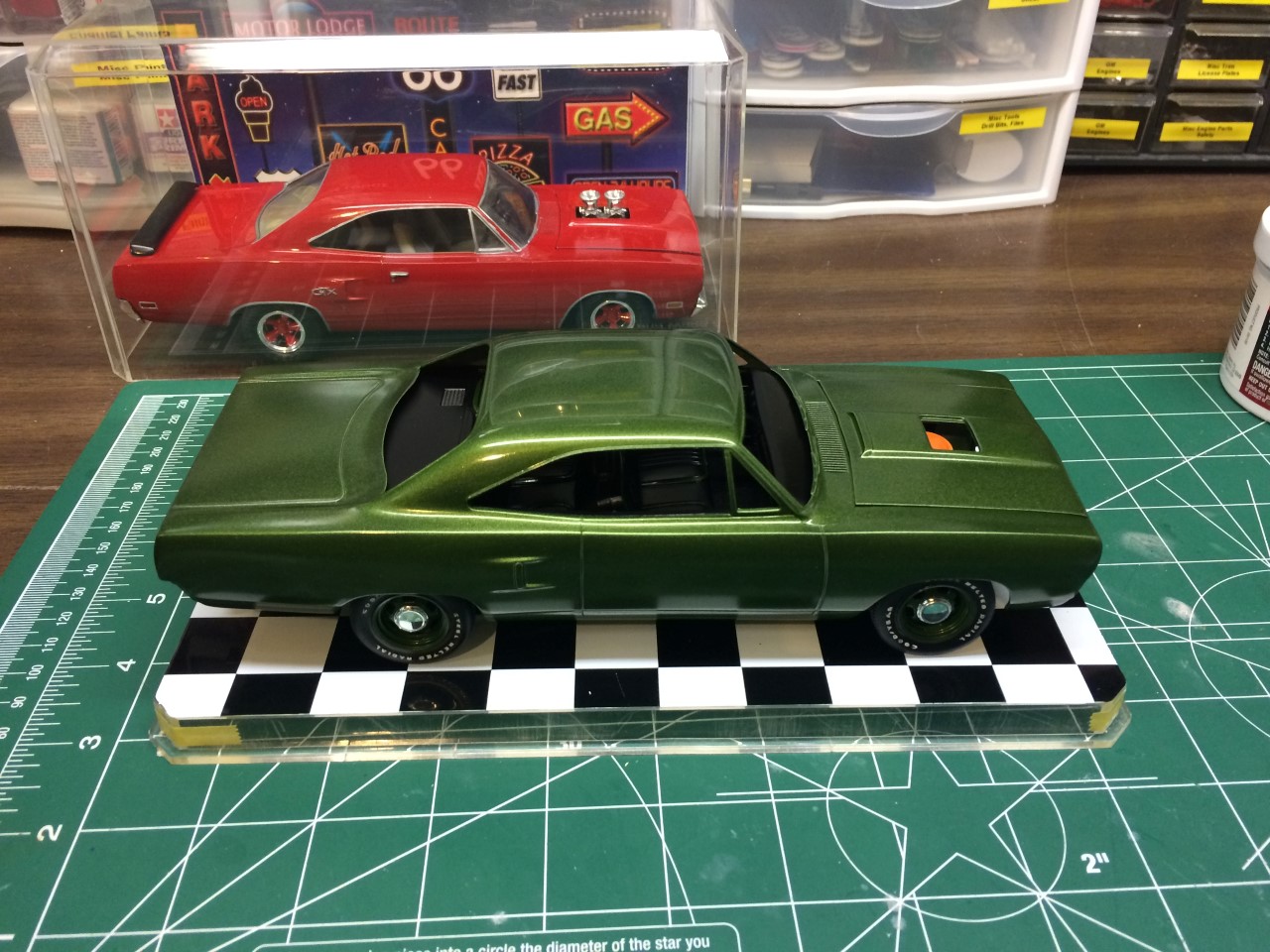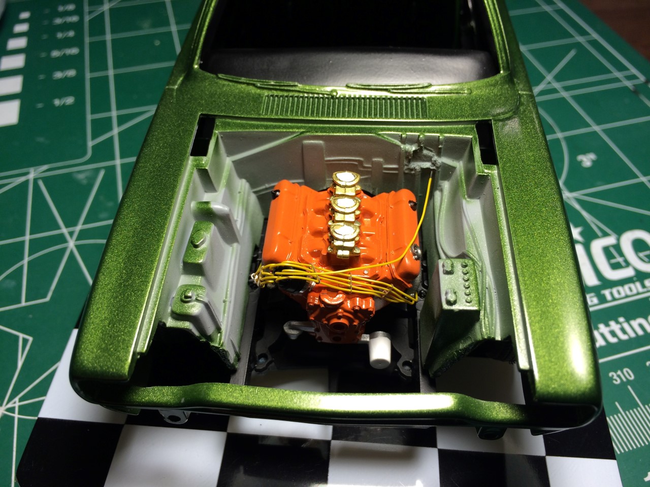 Fast forward several more years, I pulled the Roadrunner out and committed to finishing it. As I was going through the parts and trying to figure out what color I wanted to paint it, I decided that I wanted to use an OEM color. After researching the color options for the 70 Roadrunner, I elected to paint it F8 Dark Green Metallic. I ordered paint from Scale Finishes.