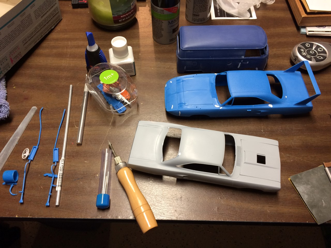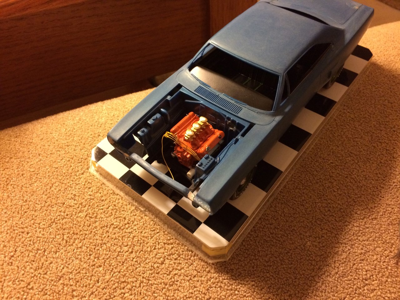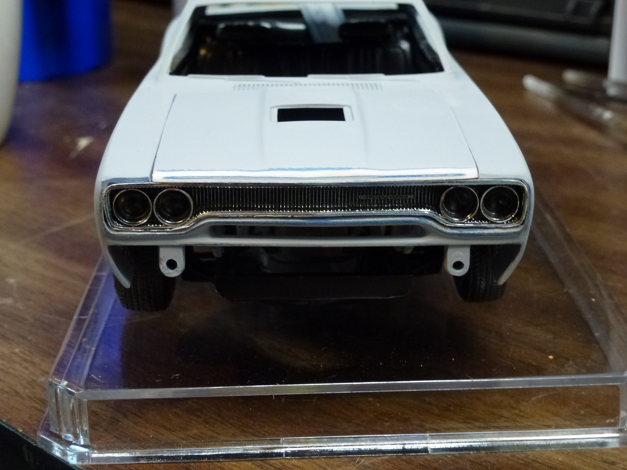 I bought this kit nearly 20 years ago and started building it. The original idea was to paint it true blue pearl but I used the wrong base and it didn’t turn out well. To make matters worse, the body was warped. I stuffed everything back into the box and set it aside. While eyeballing the completed, but unpainted GTX on my shelf, I decided to tear it apart and use the body to replaced the warped mess that came with this kit. This happened some time in 2005. While I started preparing the body, I ground down the door handles and side markers…which unfortunately, was my standard operating procedure at the time. I tended to grind away details that I struggled to finish. Regardless, I started the work and once again, stuffed all of the parts back in the box.