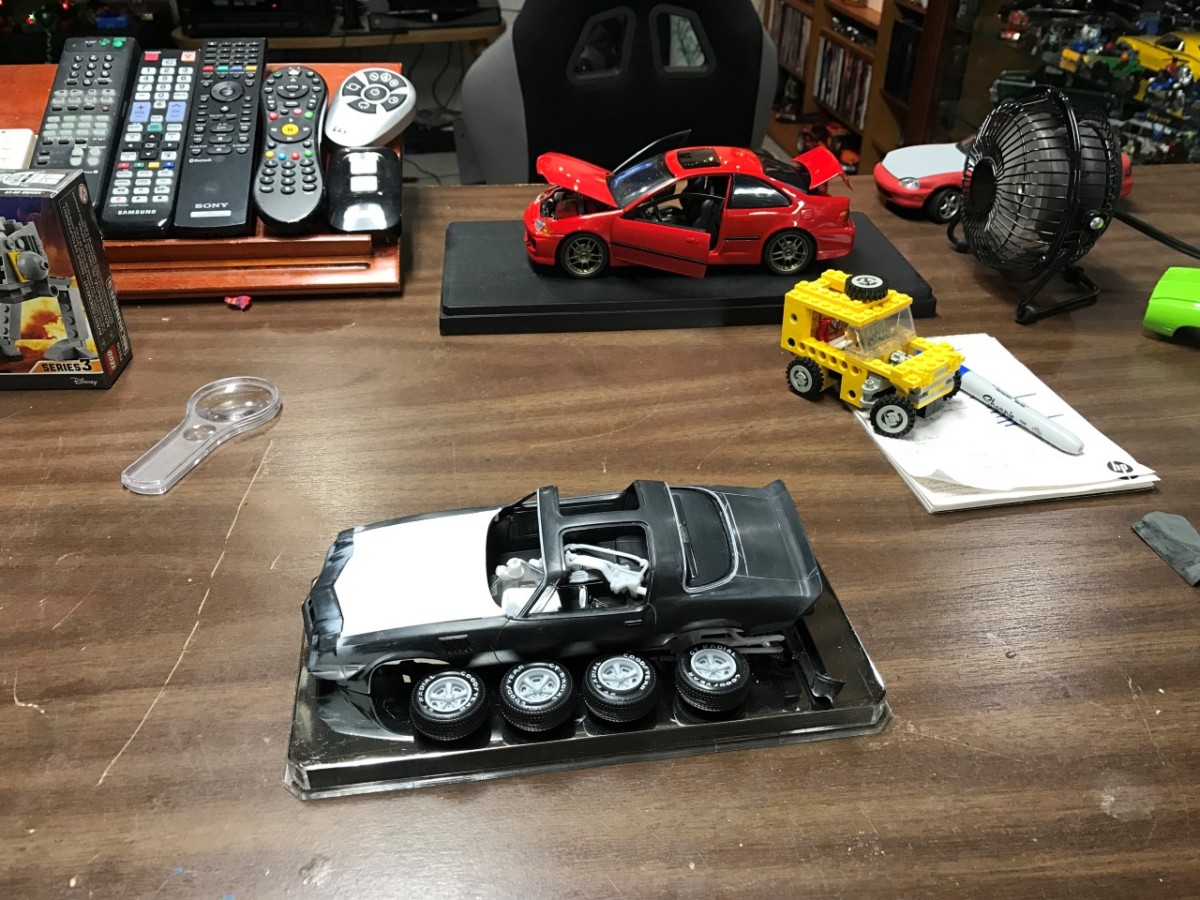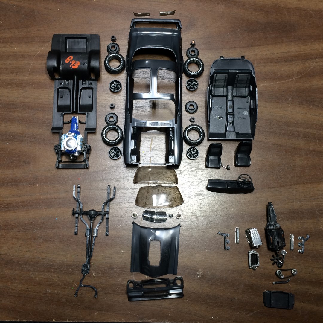 I decided to buy a full kit in order to have replacement axles and glass. The axles were damaged and I didn’t want to to have to rebuild them. I also wanted clear glass, rather than the smoked glass that originally came with the kit. Along with the clear glass, I wanted the T-top glass. I found a built version of this kit where the builder had used the T-top glass to make a solid roof. I wanted to do the same!