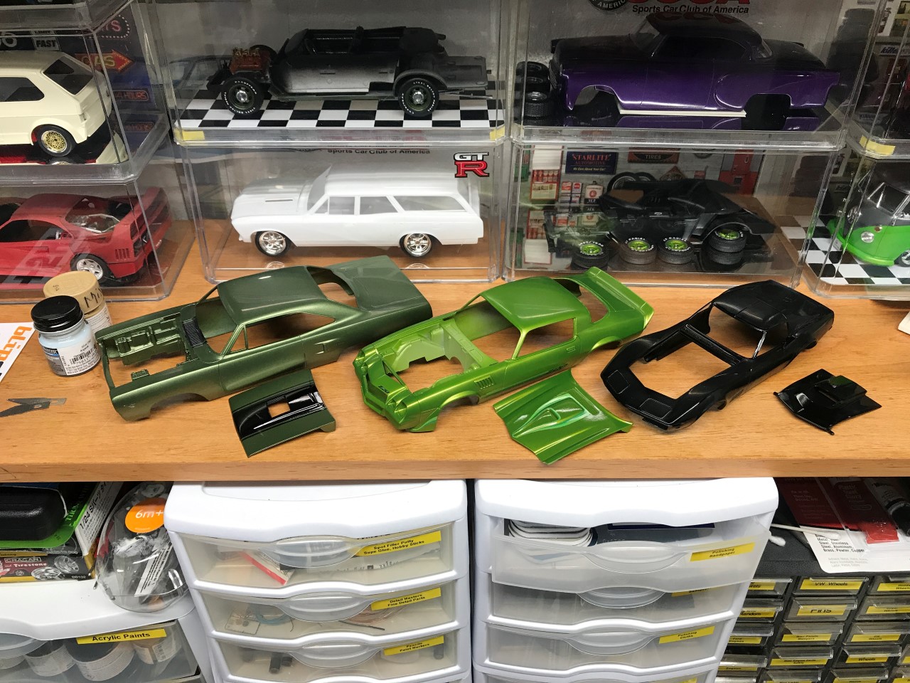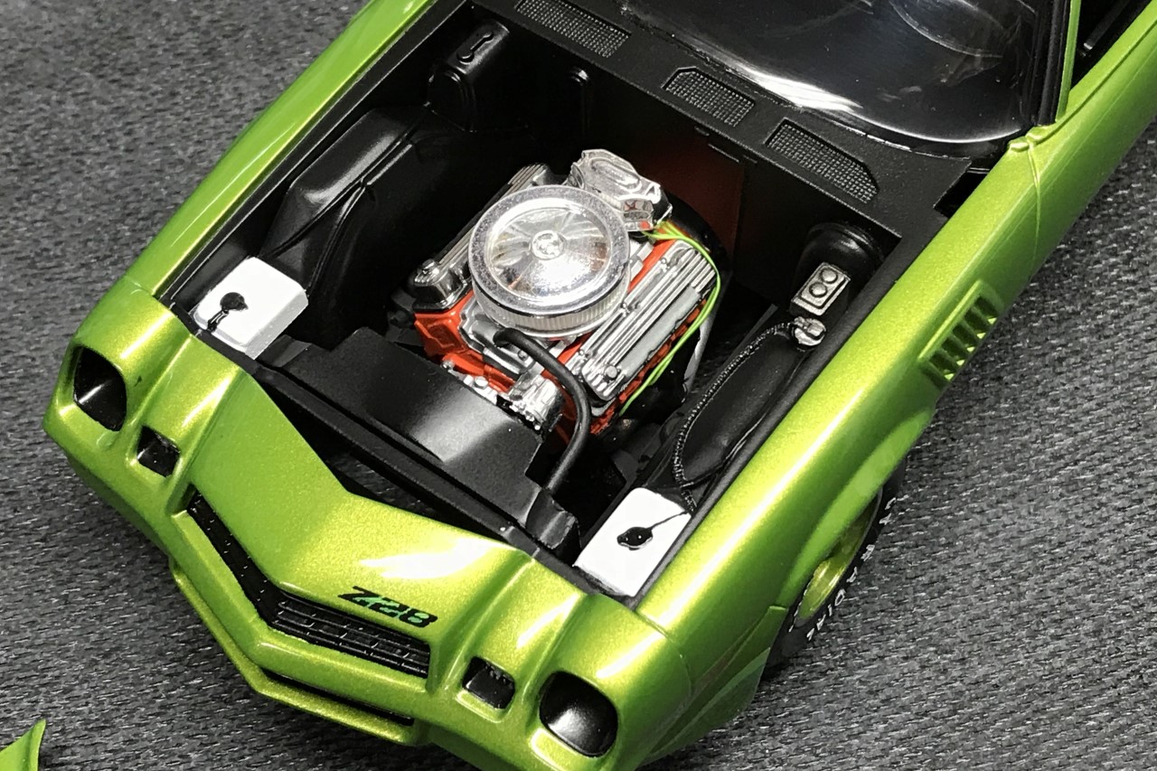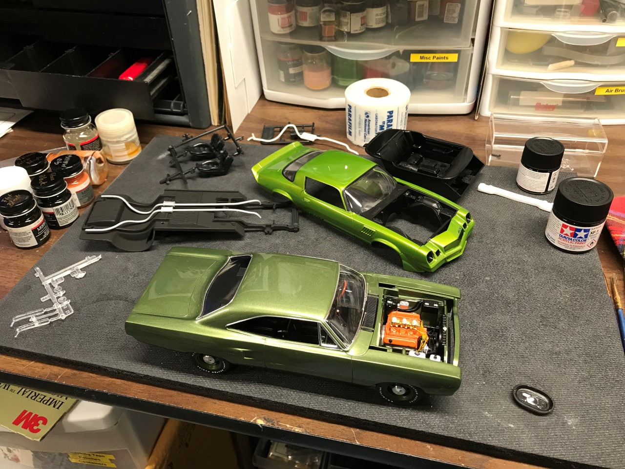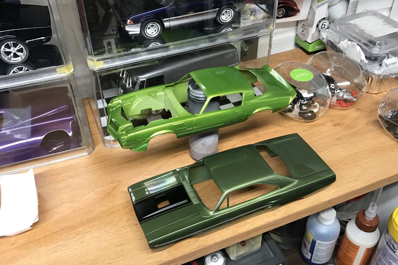 I really wanted to dial back the big engine look and managed to find a stock hood on eBay. I also decided to go with a light metallic green paint scheme. One other change, since the late 70’s were not kind to muscle cars, would be the use of the 1965 427 big block that was also being pulled from my ’53 Chevy.