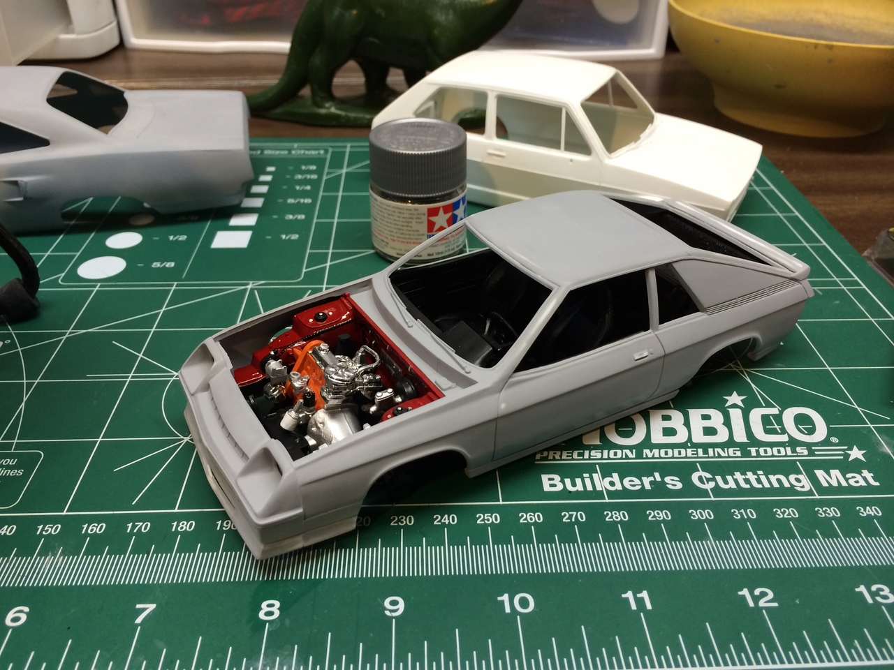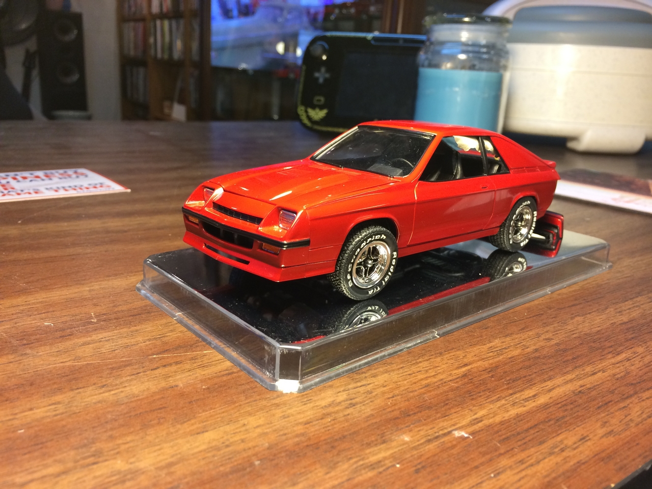 Compared to the Chargers of the muscle car era, this one doesn’t quite live up to it’s name. However, during it’s time, performance was quite hard to come by. The motivation for this project was to build as close to a replica of the ’82 Charger my dad owned. I built this one along side the Opel. The Charger my dad owned was 2.2 version which was a little different compared to the Shelby version. Shortly after I painted this kit, I discovered that MPC sold the 2.2 version. I was too far along to stop and buy the correct version so this one would have to suffice.