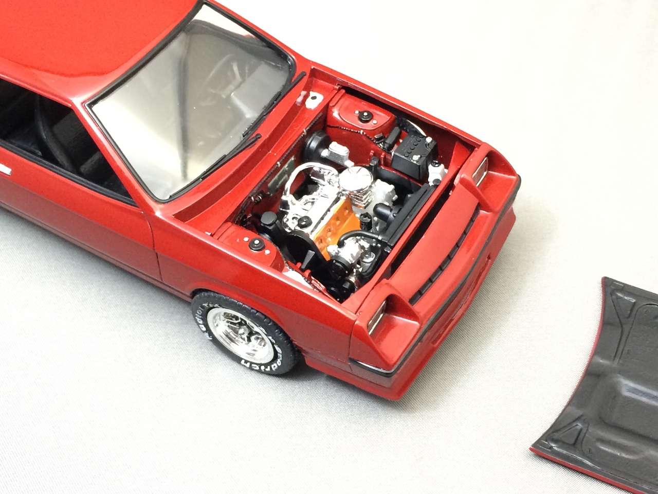 The engine could have been built with a standard carburetor or the turbocharged Shelby version. The standard version appeared to be accurate compared to 1:1 shots but the Shelby turbo version looked nothing like the rear thing. Ignoring that, the turbo setup looks good.