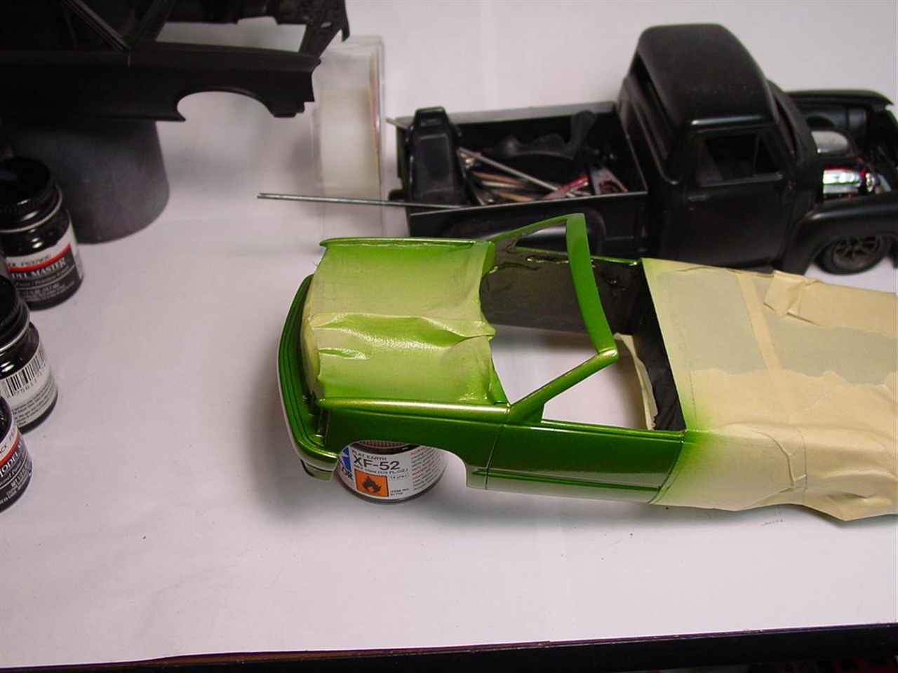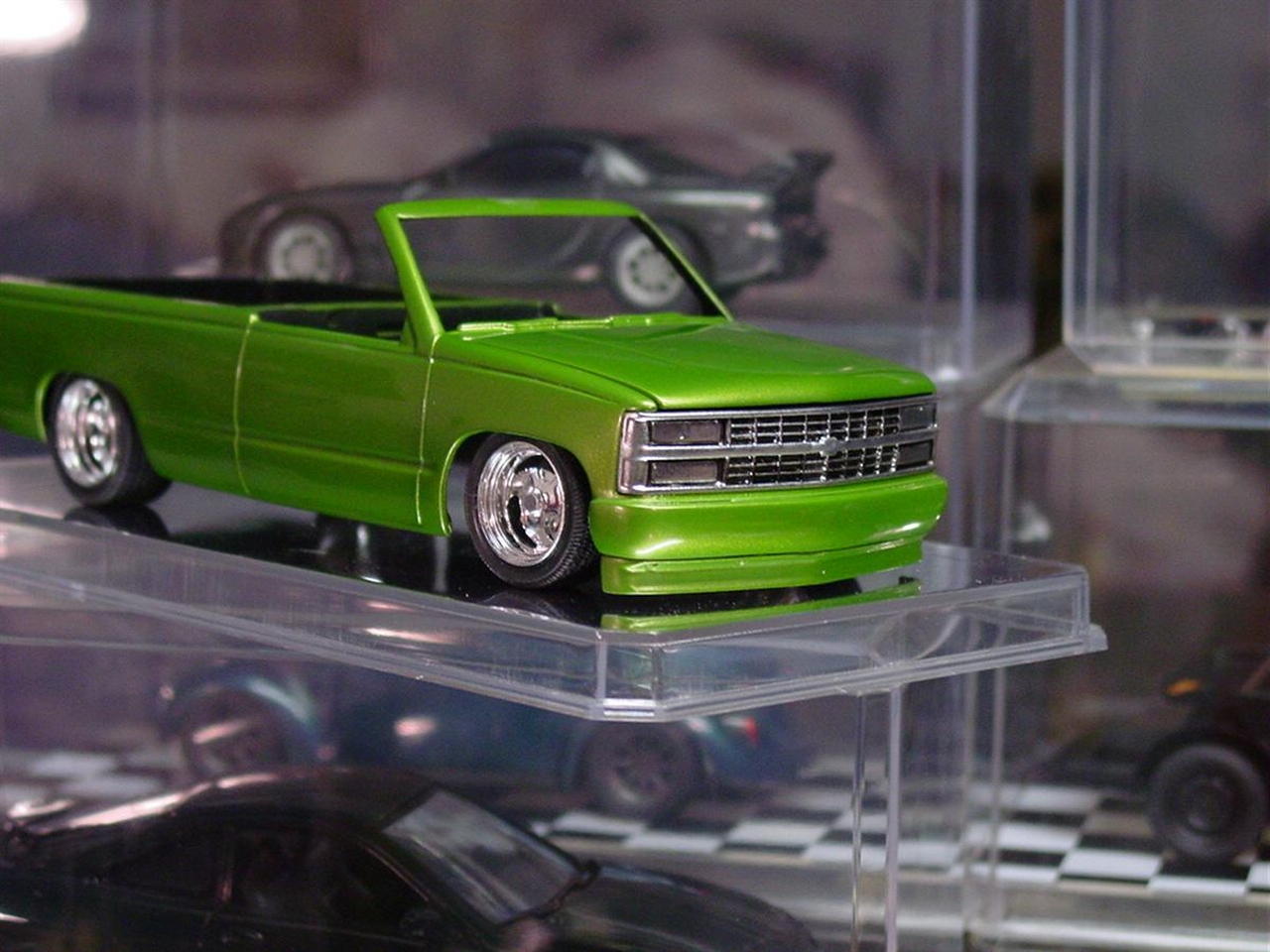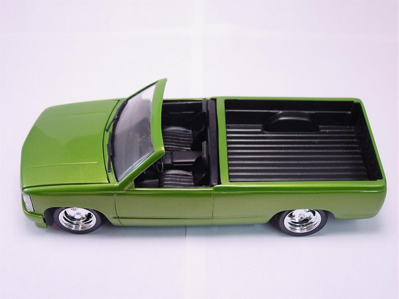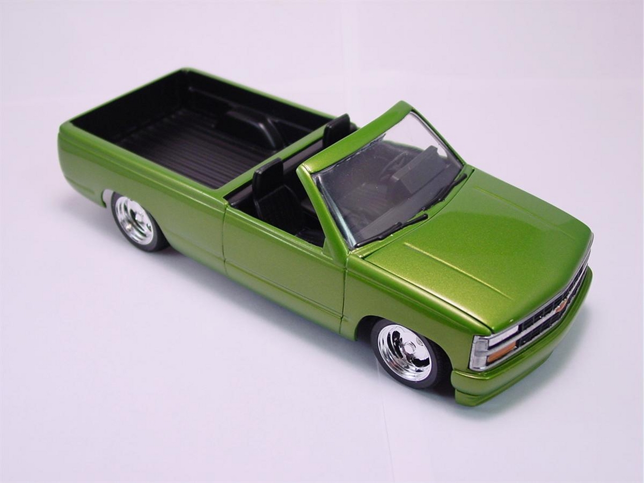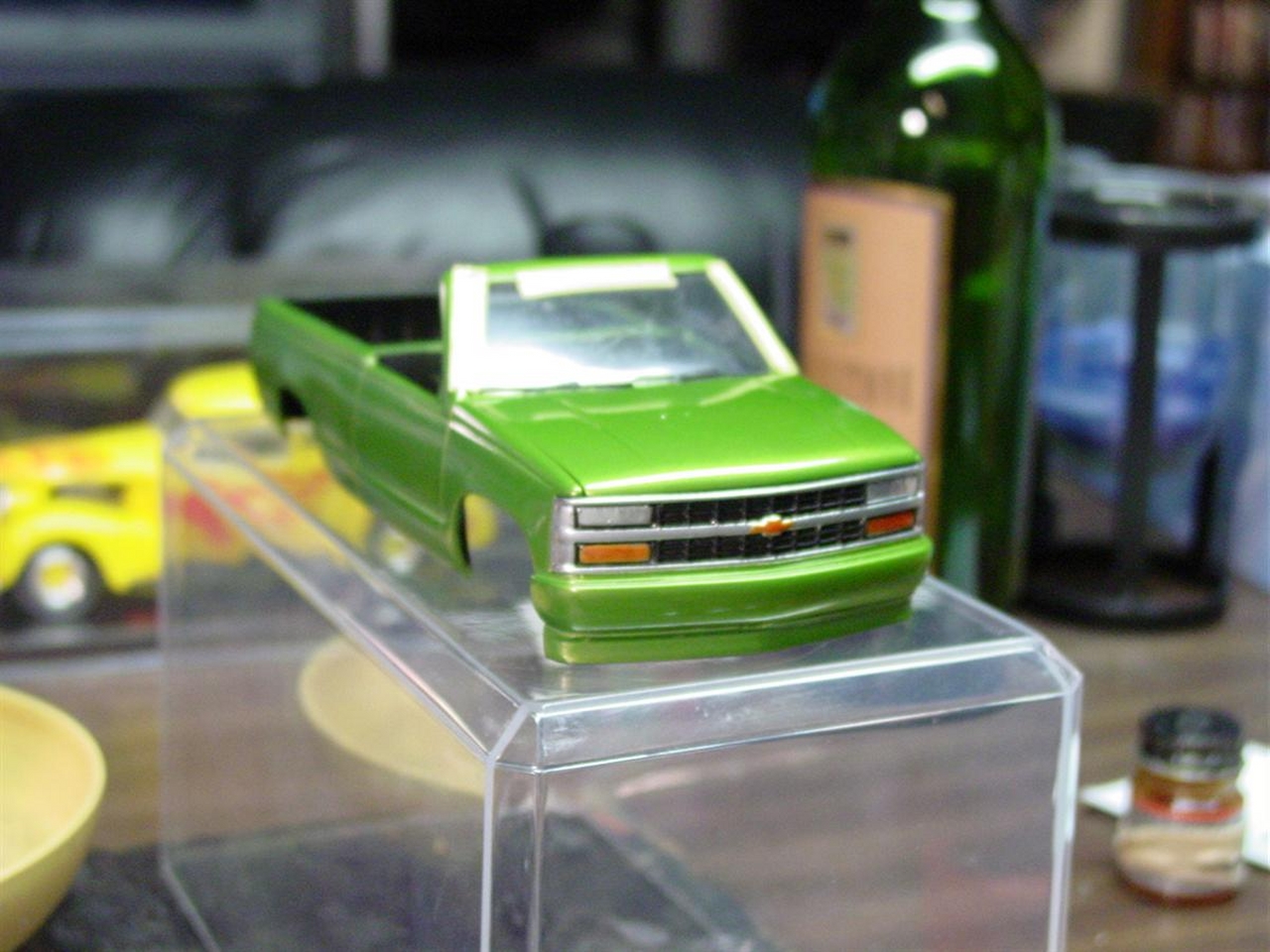 This was a labor of frustration! This kit weighs a lot! There is an incredible amount of body filler in this kit. I blended the cab into the bed. I blended the tail gate into the bed. I built up the area around the interior to make it look right. I later added corvette tail lights. They were sourced from a ’96 vette kit that I wasn’t going to build. I also used chezoom wheels, along with ’73 trans am front and rear suspension. I grafted in a transmission tunnel from a ’94 trans am kit. I used the engine from the Corvette kit. I also smoothed out quite a bit of the dash to give it a clean look.