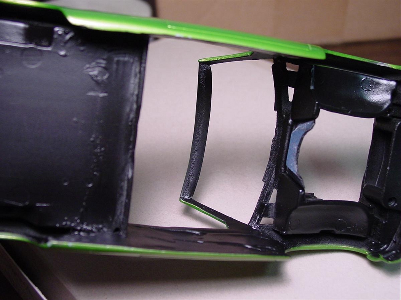 I had finished this kit to the point where all I needed to do was glue in the battery under the hood, and I managed to knock it off of my bench. It landed bottom side up, smashing the windshield pillars. I was able to get it fixed and repainted, but it wasn’t as great as it was the first time around.