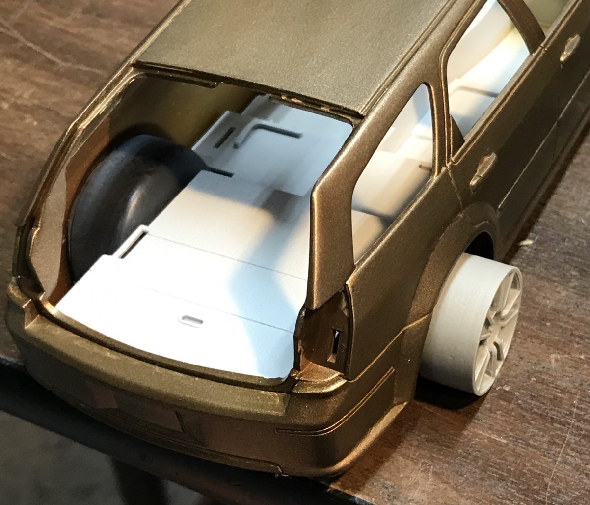 For the most part, it is a box stock build. I used Y9 dark gold paint from Scale finishes. I like the idea of using a classic color on a modern build. Gravity Colors 2-part clear was used for the finish.