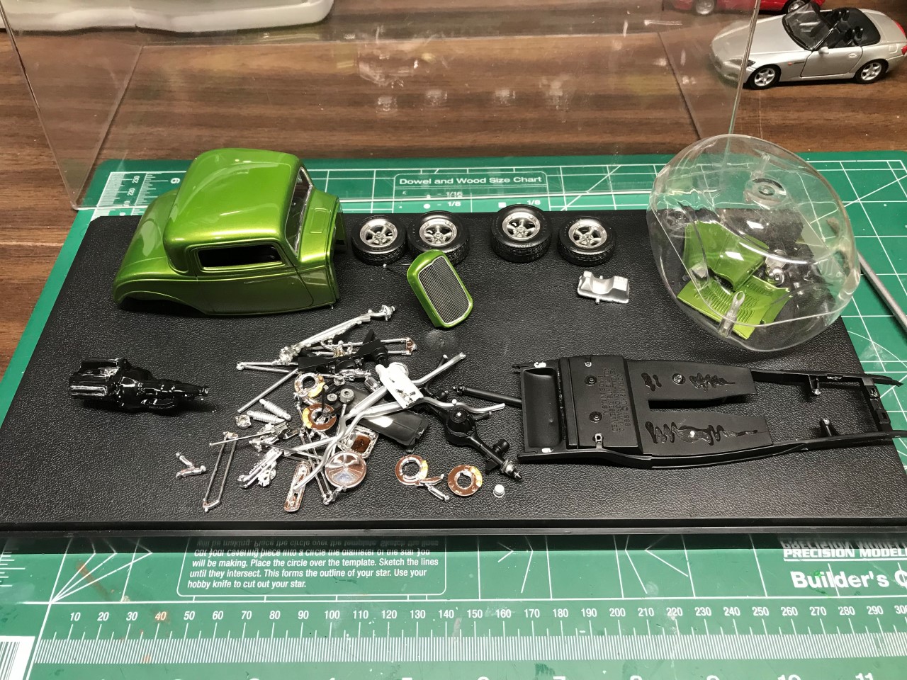 Once I blew apart the Ford, I remembered how poor the chrome parts looked. During the original build, I didn’t have the skill set and patience to try alclad (even though I had it). I touched it up the issues with silver paint. Now that I have no problem using chrome paints, I knew what I had to do.