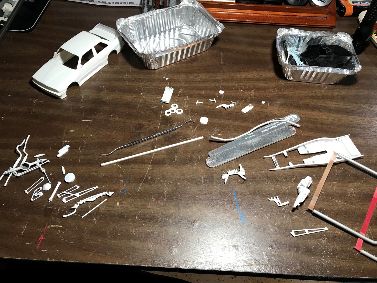 The chassis and every last part that wasn’t the body and interior was stripped of chrome and paint. I spent an obscene amount of time removing mold lines from each of the numerous parts of the chassis and suspension. I used filler to work out the sink marks in the chassis and cleaned up the ejector pin marks and anything else that didn’t belong.