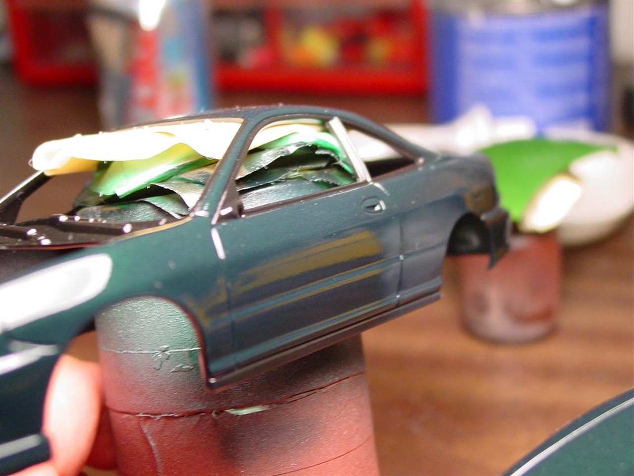 My brother used to have a ’95 Acura Integra. He always talked about wanting to paint it either a dark green metallic or black with gunmetal wheels. He never got a chance to do it with the full sized version. I thought I would give him his wishes in a scale model!