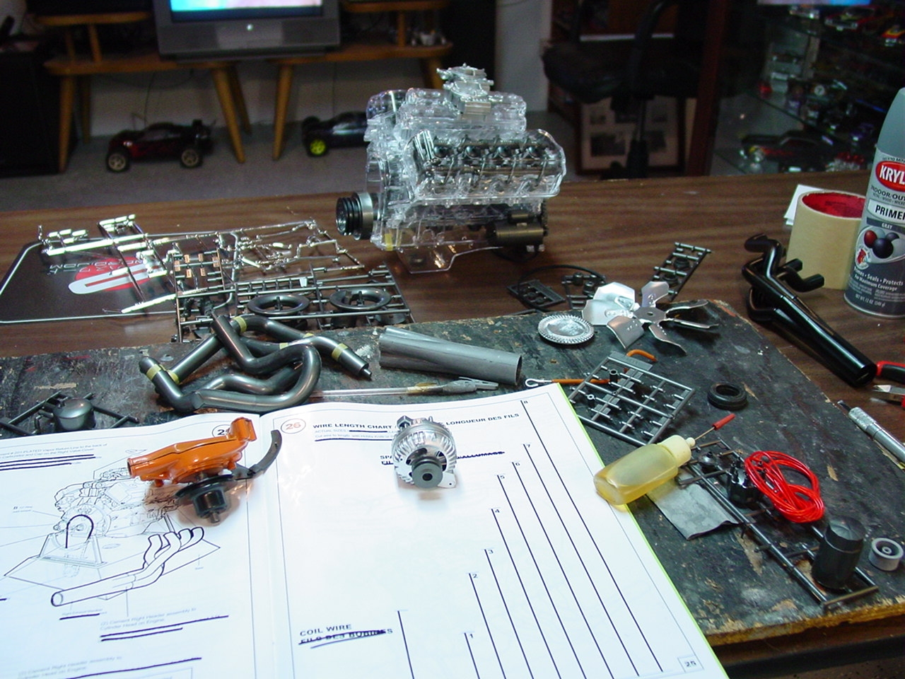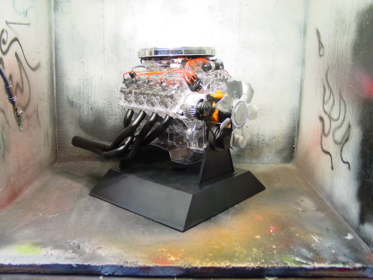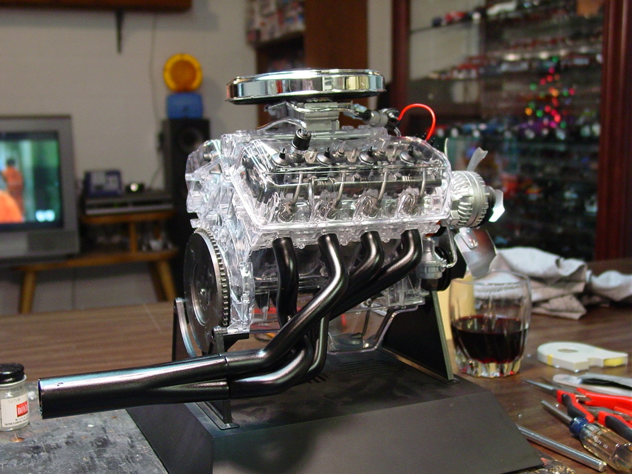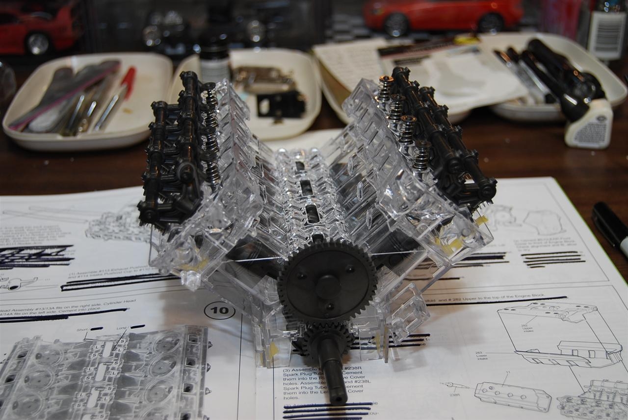 I built a clear engine when I was a kid and I wanted to do another. This was a tedious but fun build. The valve train and other internal components were cumbersome but turned out awesome. I had built the internal portion of this kit about a year earlier. I stopped when I got to the point of needing paint. I pulled this kit out, bought some spray paint and went to town with the final details.