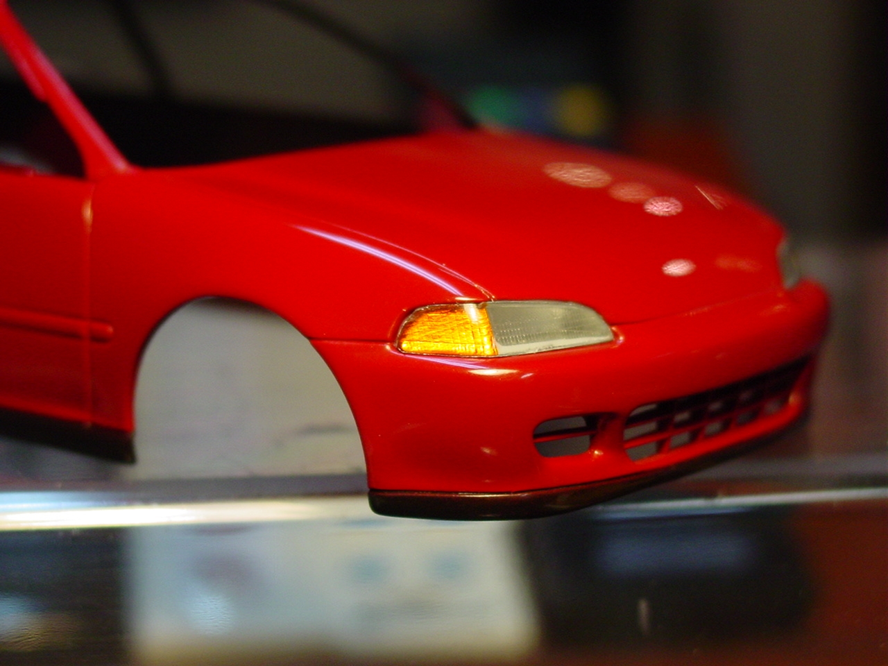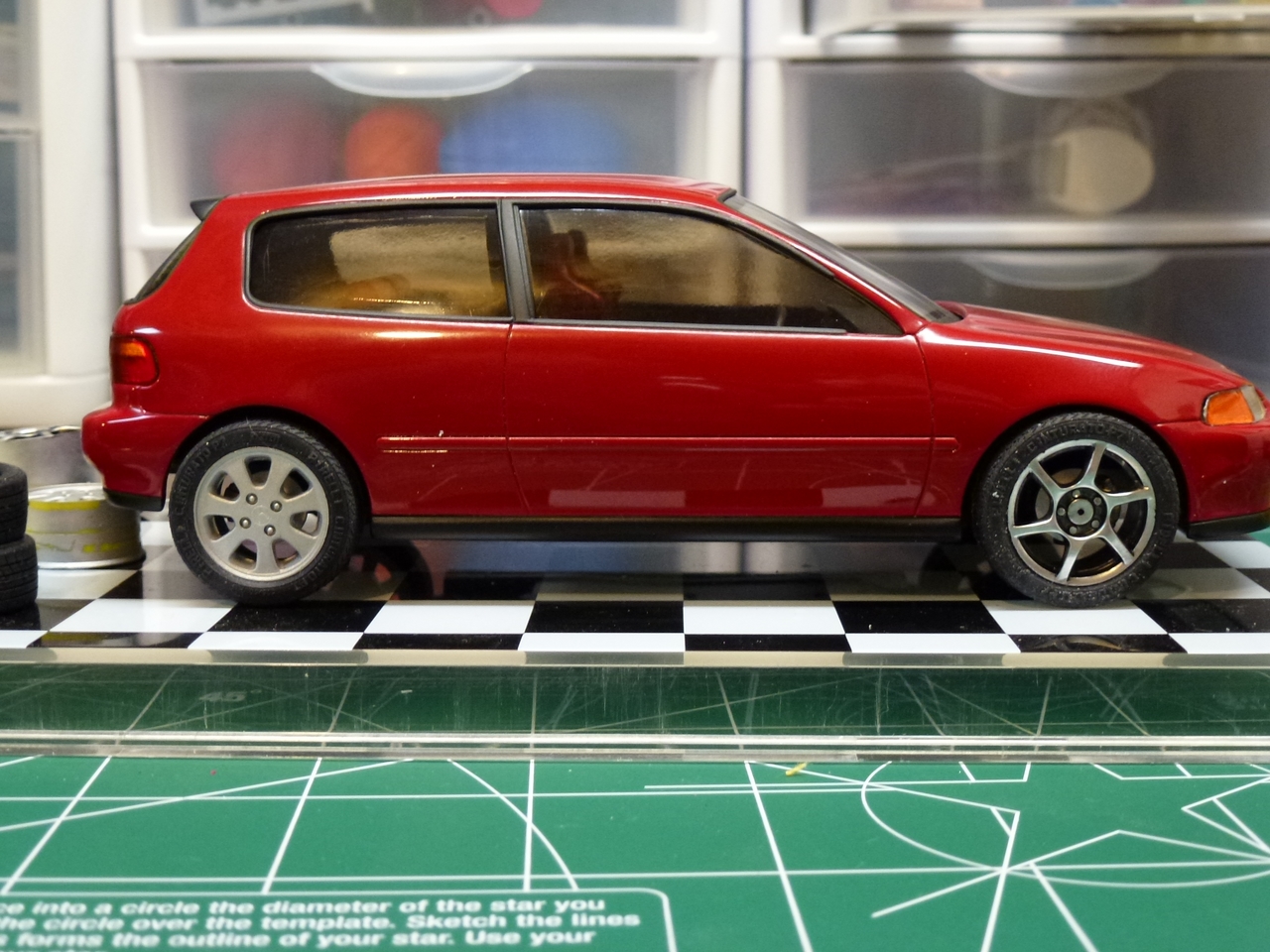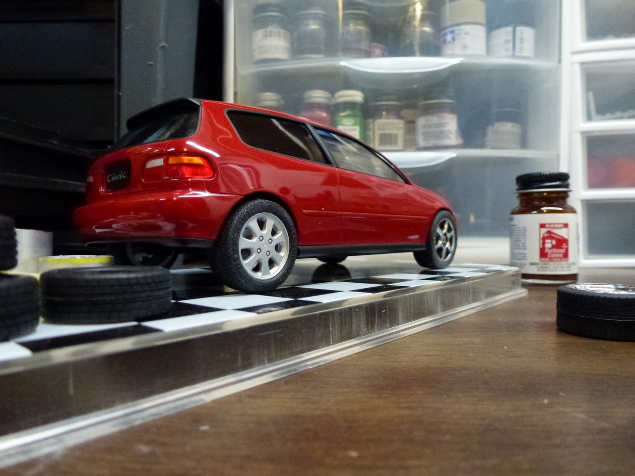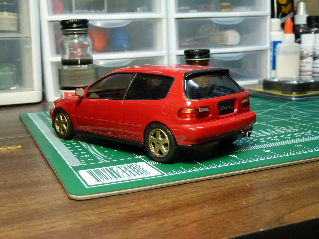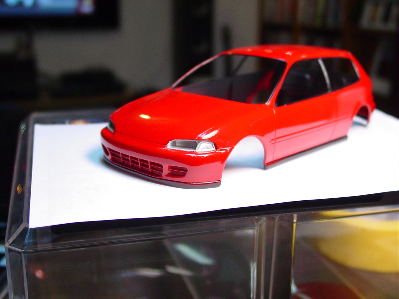 This kit was painted using the leftover red paint I used to paint the fenders of my 1:1 Civic. I opted to shave the door handles, side markers. I later regretted shaving the side markers. By the time I was ready to finish this kit, I would have been able to easily detail the side markers.