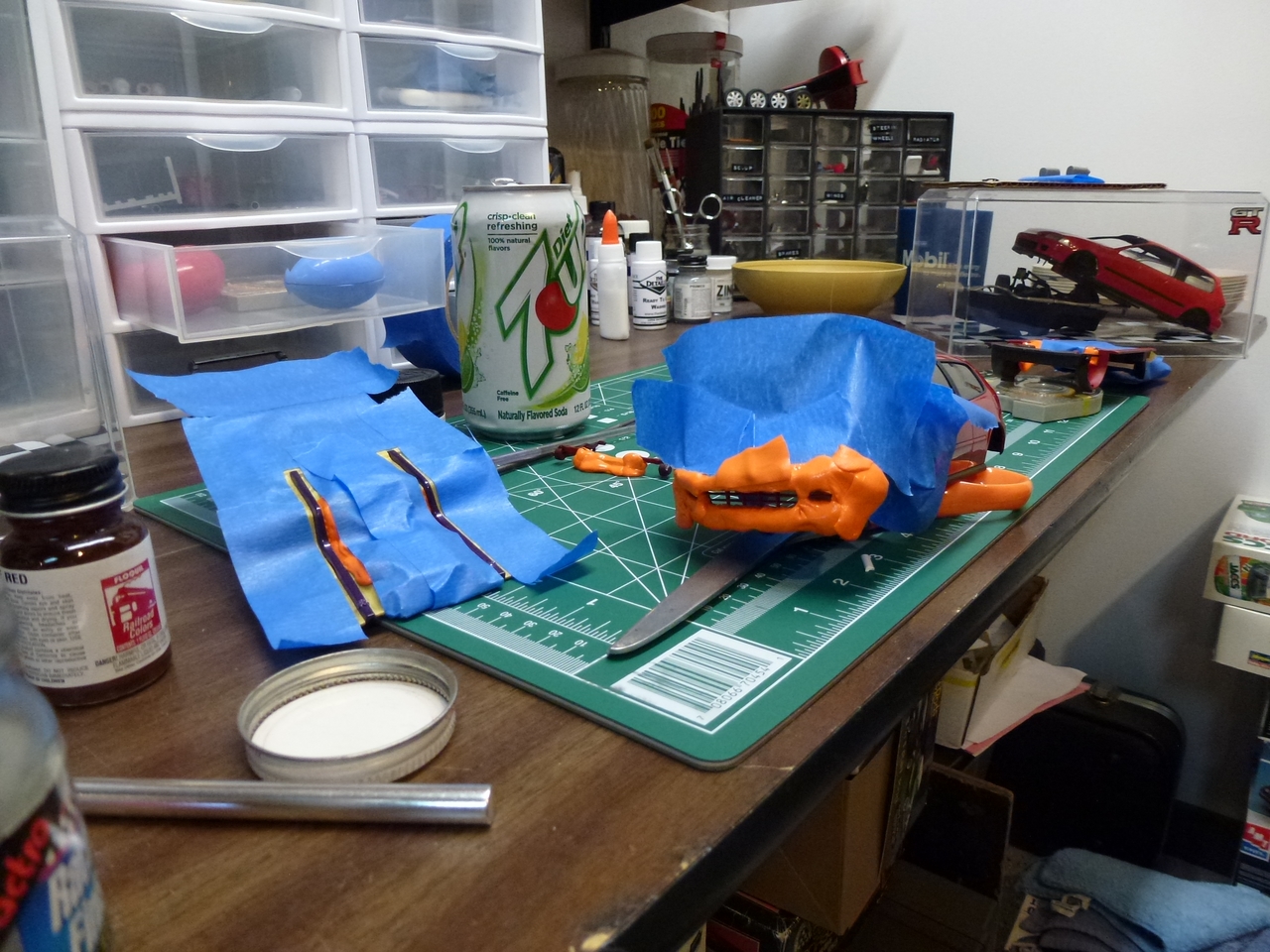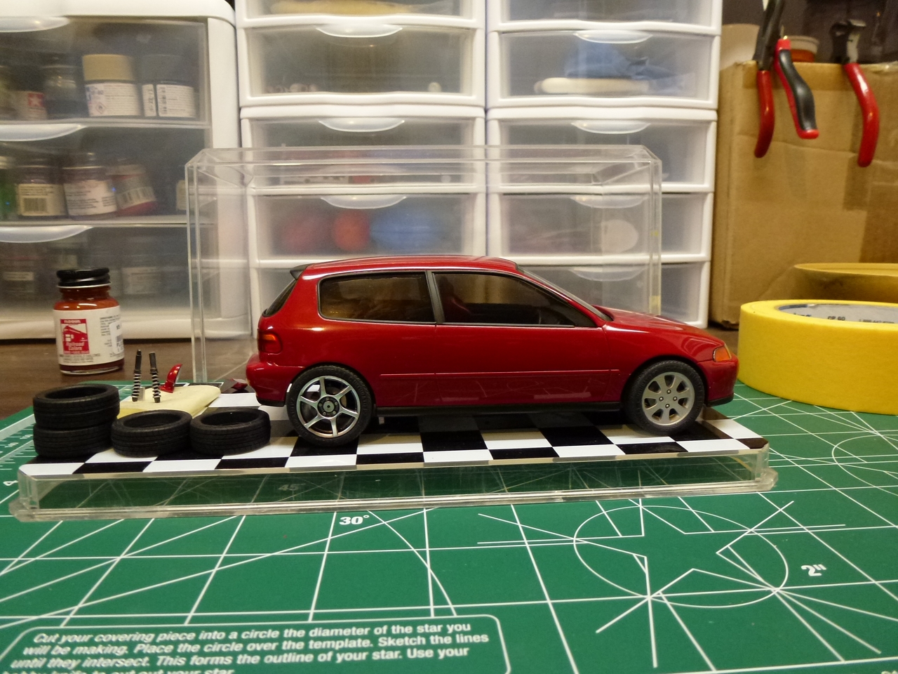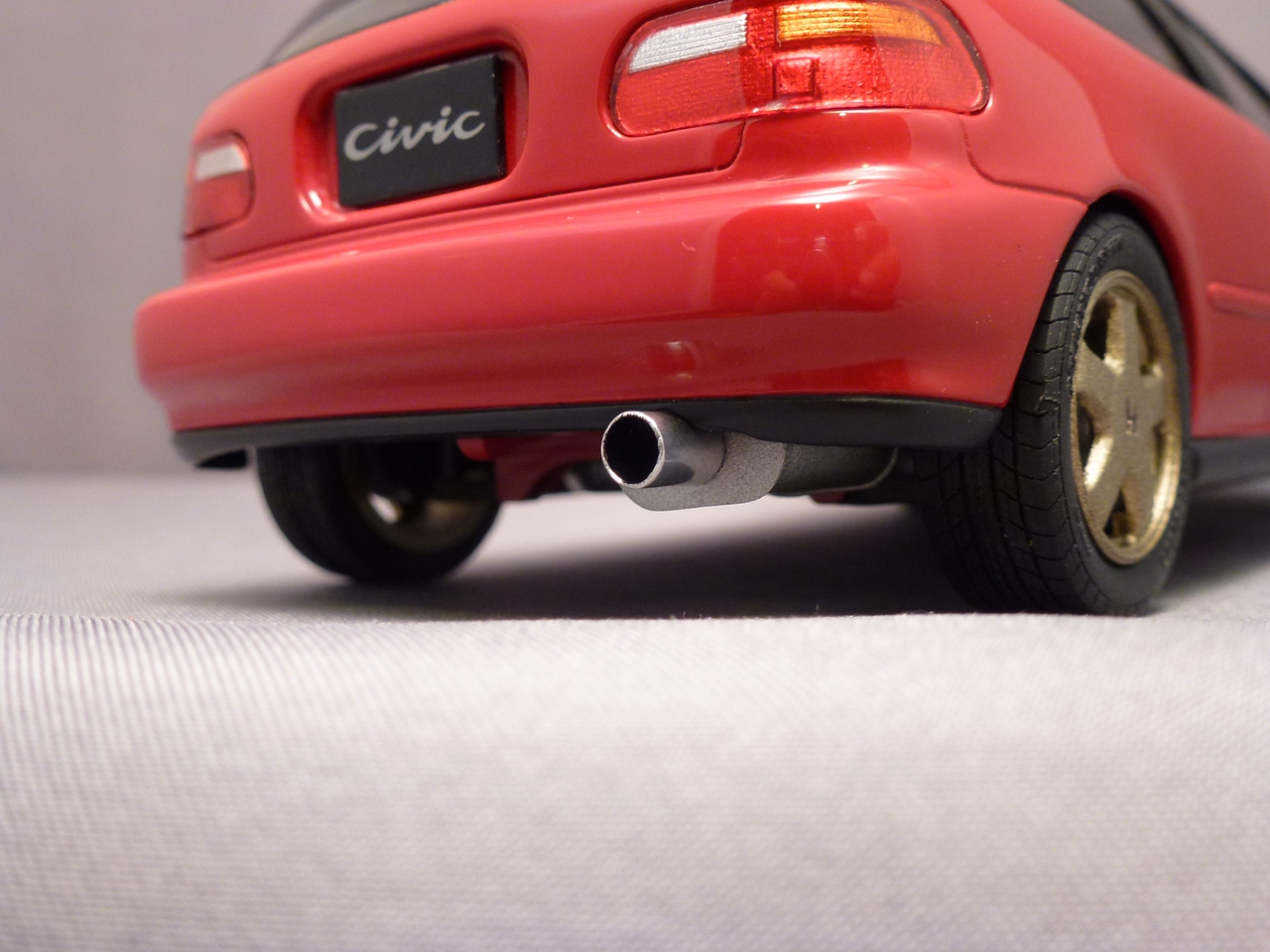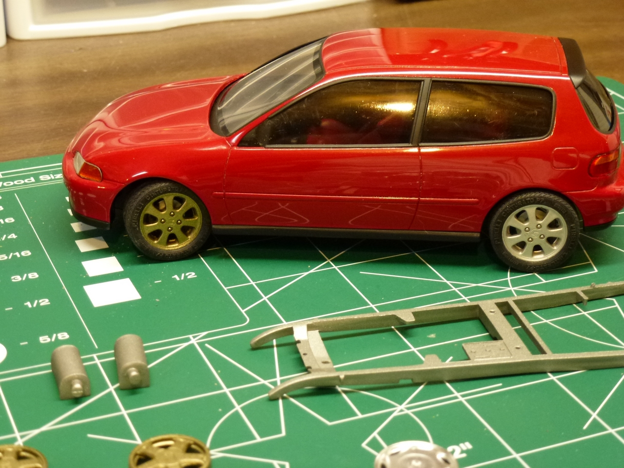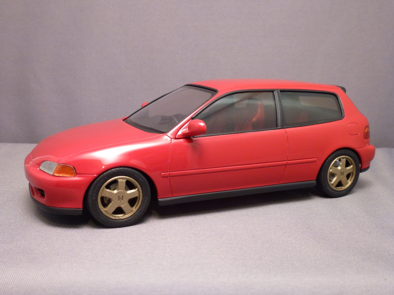 This kit was painted using the leftover red paint I used to paint the fenders of my 1:1 Civic. I opted to shave the door handles, side markers. I later regretted shaving the side markers. By the time I was ready to finish this kit, I would have been able to easily detail the side markers.