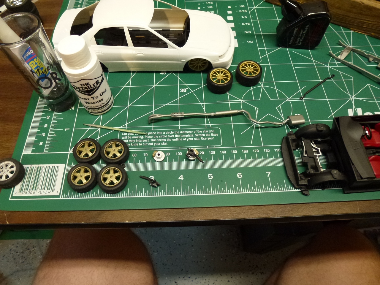I felt that this model sat a little too high. Using a trick I read in Scale Auto, I had a way to lower the car without butchering the suspension. I think it turned out really well.