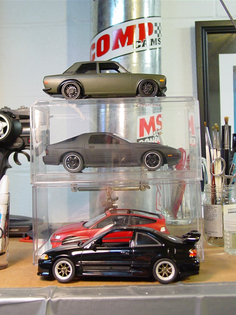 In 2012, I decided that this kit needed mufflers and tail pipes.  In keeping with the tuner look, I chose an over-sized aluminum tube to finish it.