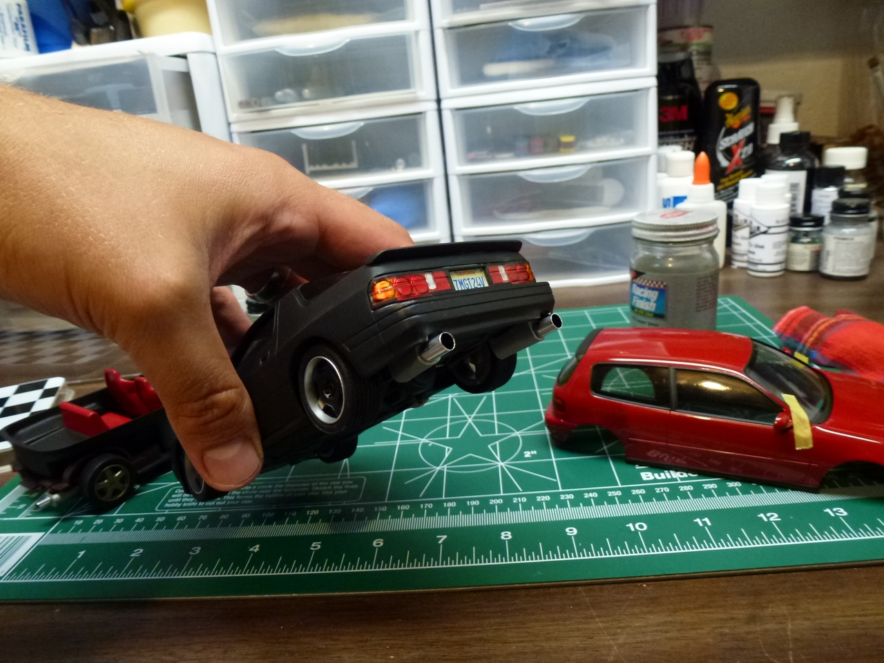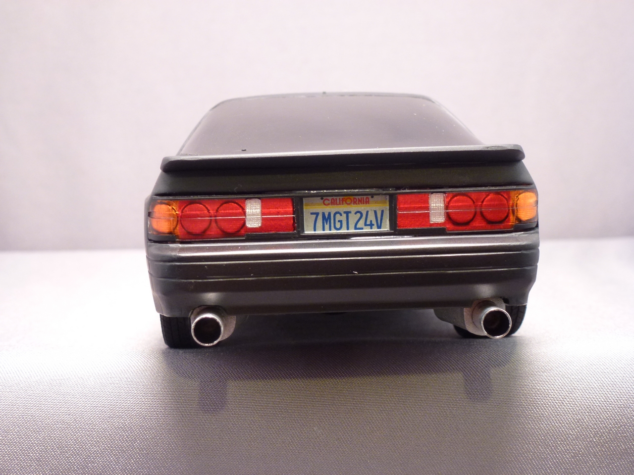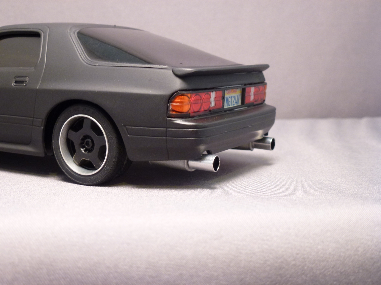 In 2012, I decided that this kit needed mufflers and tail pipes. In keeping with the tuner look, I chose an over-sized aluminum tube to finish it.