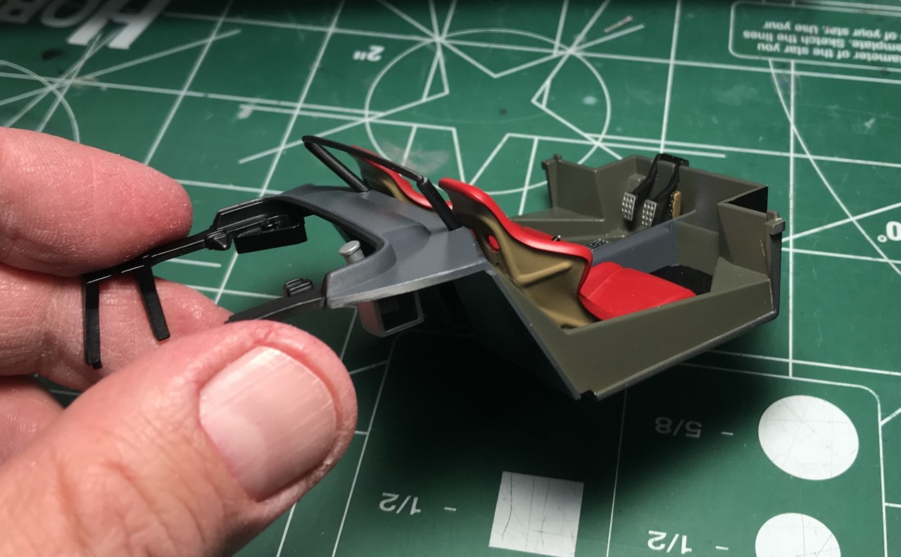 Per the instructions, I mixed Tamiya colors for the seat backs and tub.