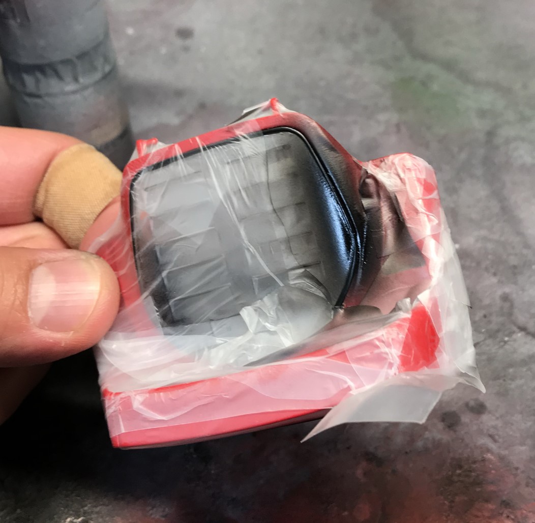 Discouraged my mistakes, I let the clear set for a few weeks. I did have a plan even if it wasn’t the perfect solution but it prevented me from having to start over. The plan involved slowly spraying color around the light edges. I masked around the headlights but knew I would be dealing with a lot of over spray. In the end, the fix worked out perfectly!