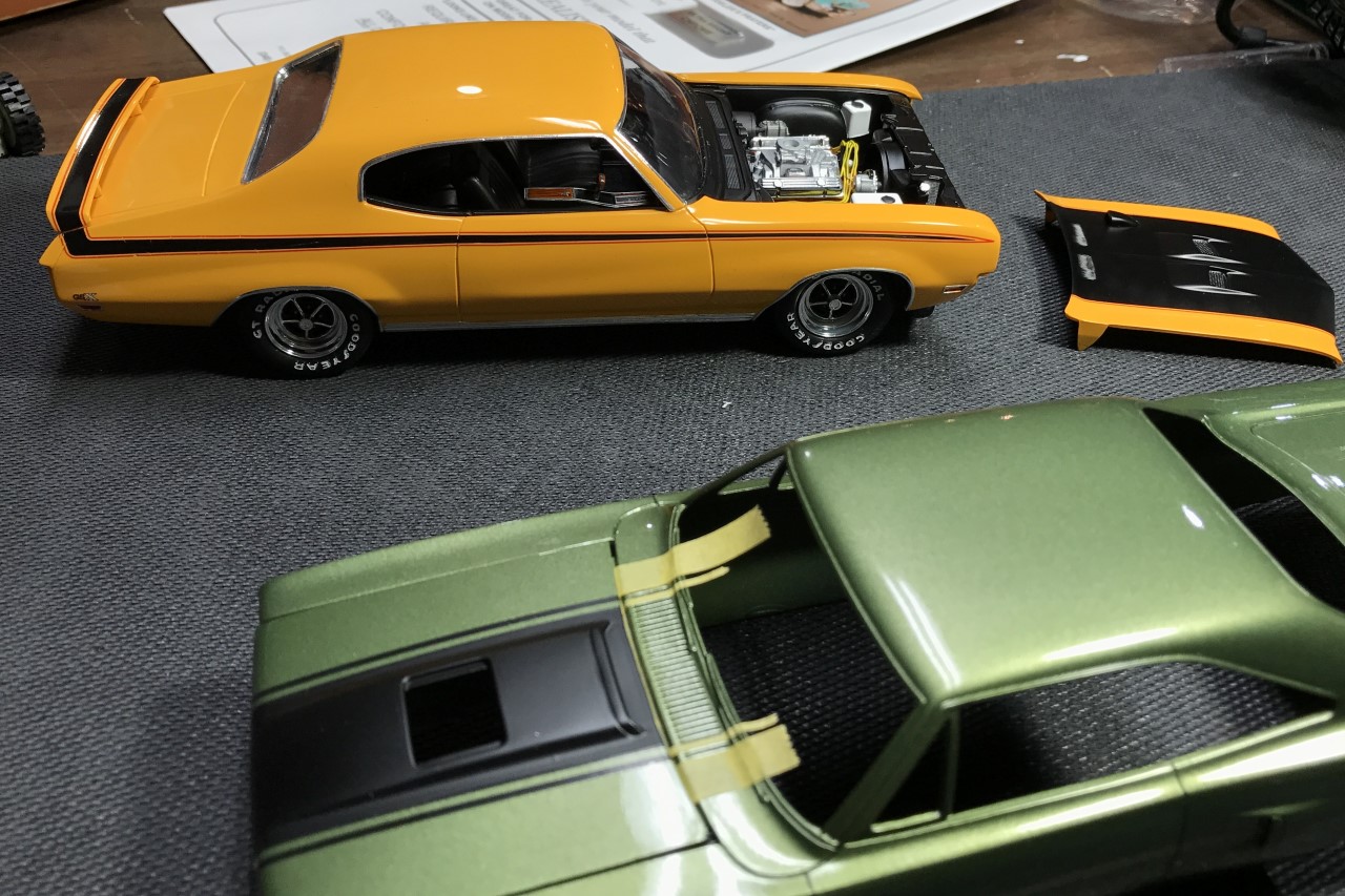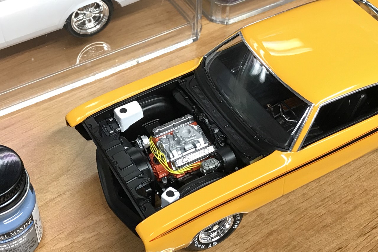 Through April, I made progress on several kits. I finished the interiors for both the 70 GSX and the 70 Roadrunner. I will continue to sing my praises for the Molotow chrome pen! Using the 1 mm pen to pick out interior detail generates amazing results! With the interior completed, I was able to assemble the bulk of the Buick. I also attached the rear bumper. The only thing left on the Buick is to wrap up the front bumper and engine details.