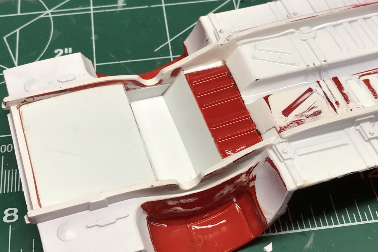 I also made solid progress on the 53 Chevy chassis. Using pieces pilfered from a spare kit, I extended the rear wheel wells to accommodate the lower stance. I also finished gluing all of the floor pan panels. The next step is filling and smoothing out all of the seams.