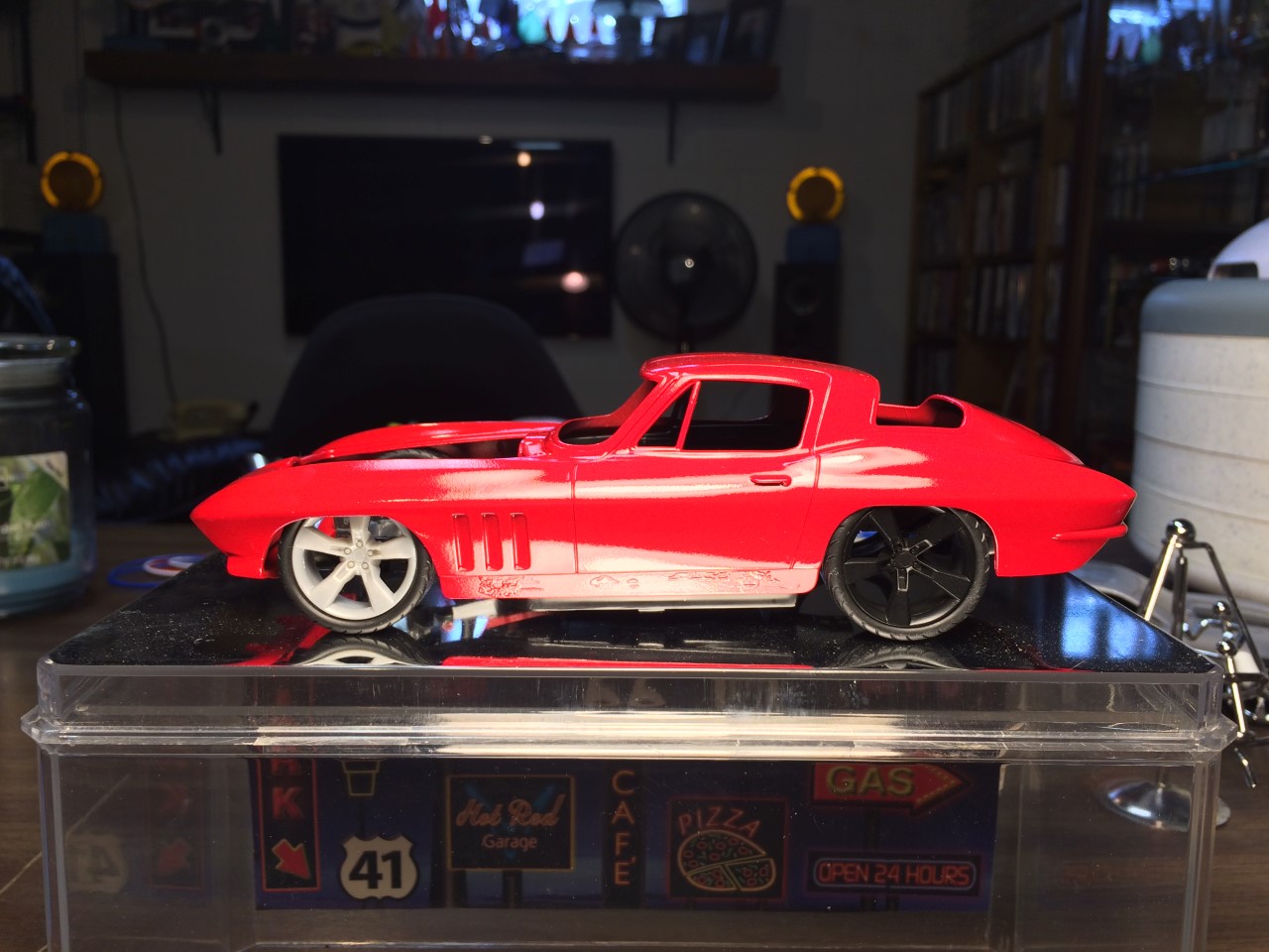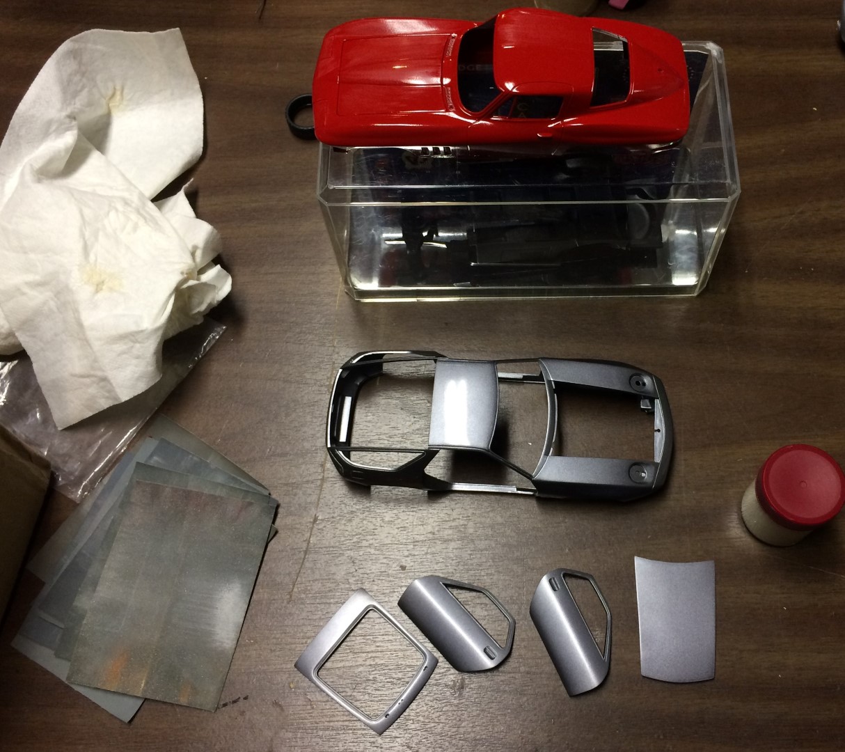 Through August, I continue to make progress on the ’65 Vette, 928 Porsche, WRX STi, and Golf. All but the Golf are in clear coat. I worked towards completing sanding and polishing the clear on all of the kits.