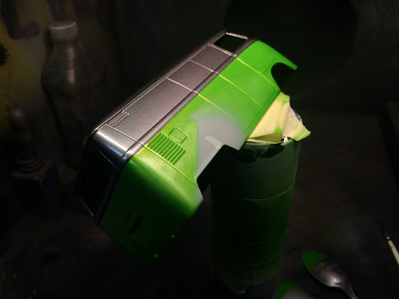 Having wrapped up a few projects, I started attacking the VW bus. I started that project in 2007 and having figured out how I wanted to paint it, I really wanted to hammer it out. For the most part, the paint work was going well until a mishap to the green paint when I pulled off the masking, it slipped out of my hand and landed on the still solidifying paint. The mistake led to a series of mistakes that resulted in the bus going in for a dip in the degreaser to strip the paint.