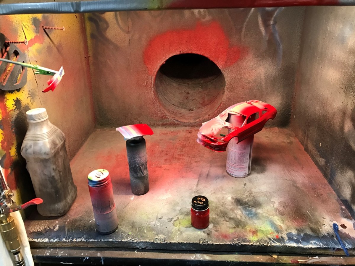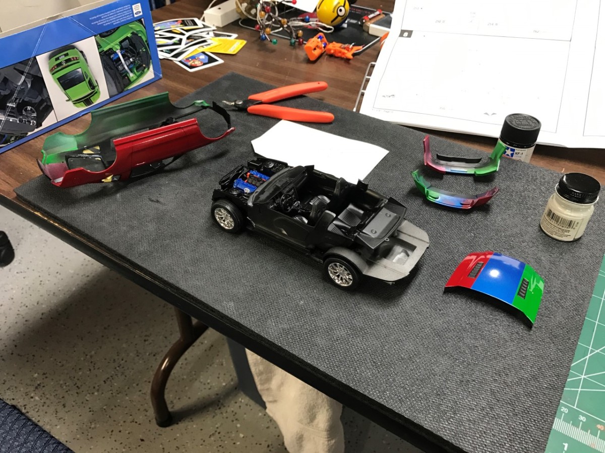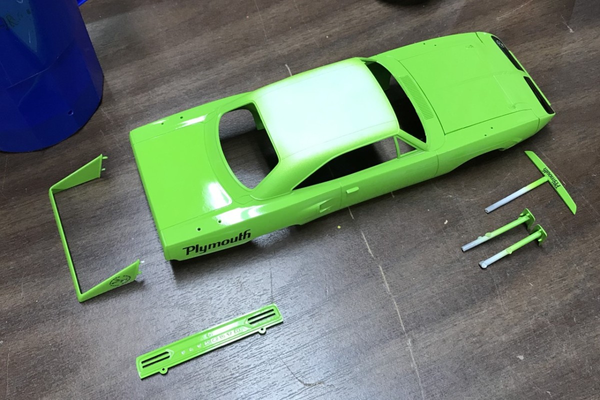 I also helped my son by finishing the crazy paint on his Boss 302 Mustang. The paint scheme was nothing I would ever do on my own, but it did give me a chance to see how well I could mask a multi colored paint job that didn’t use existing body lines. I’ll need this on my MKI Golf race car.