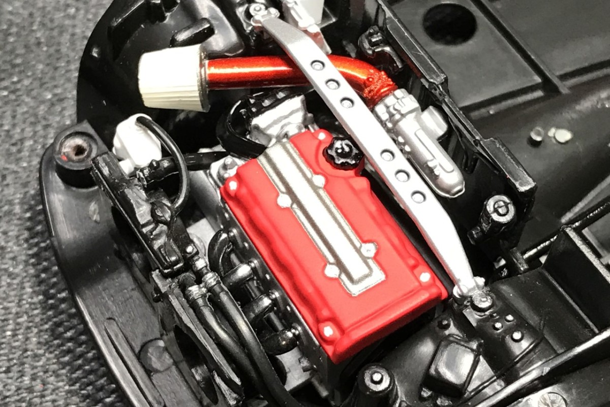 I also managed to finish the die-cast Civic that I started in 2005. I had restarted work on the body a few months earlier and only had minor details to finish. Once that was done, it was time for primer, color and clear. I did have some challenges with the color and clear but sanding and polishing knocked them out. With the body complete, I masked and sprayed the trim. I also took the time to add detail to the dashboard and door panels. Having just finished carpet flocking on the CRX, I decided that this project needed it as well. The flocking work on this build turned out really well! I also detail painted the engine. While piecing the Civic together, I realized I was missing a few parts. I managed to find them stashed with another aborted die-cast project. I also detail painted the wheels and scrapped the plastic exhaust tip for an aluminum tube. Finishing this long build, started 11 years ago, was very satisfying!