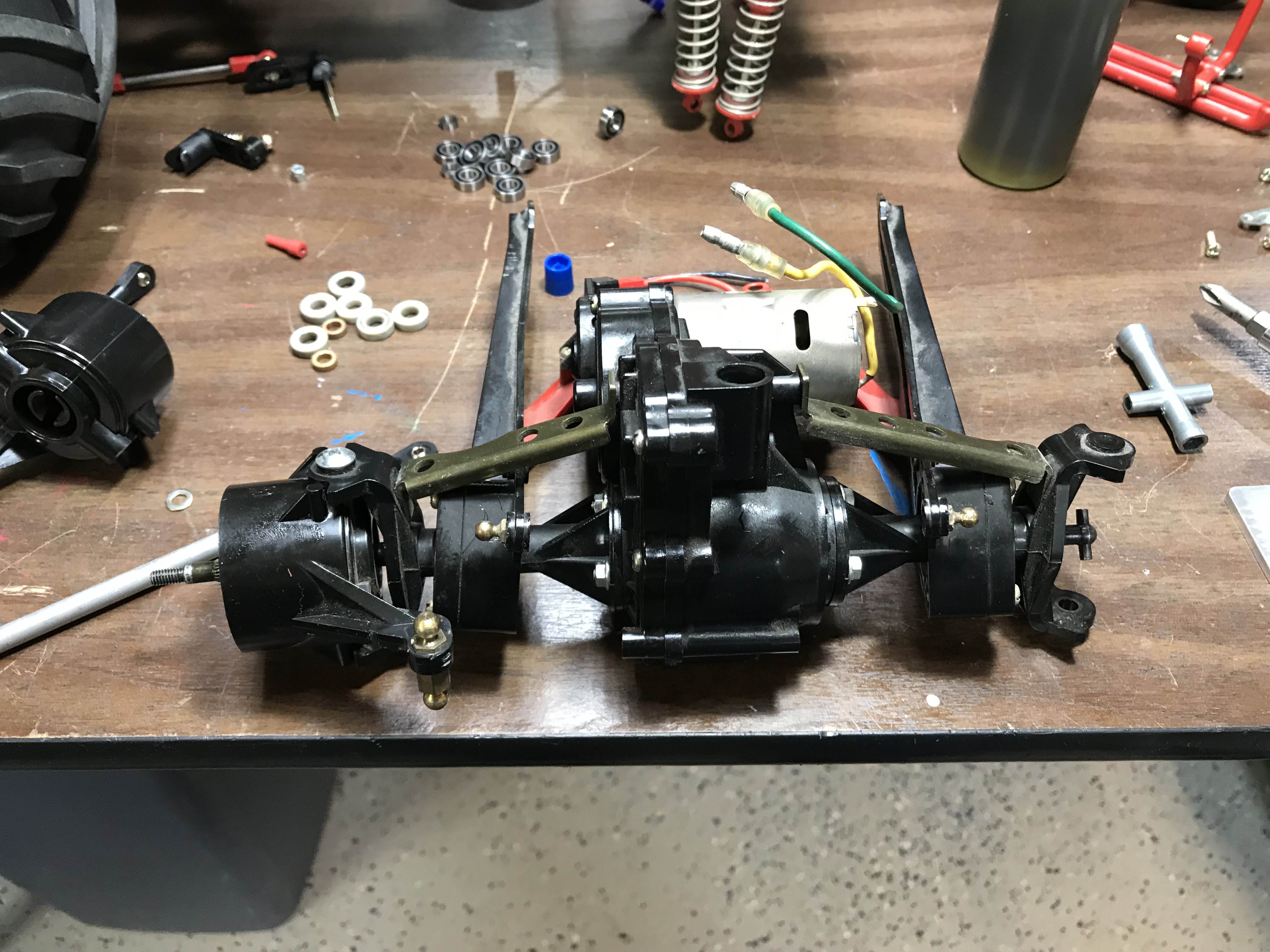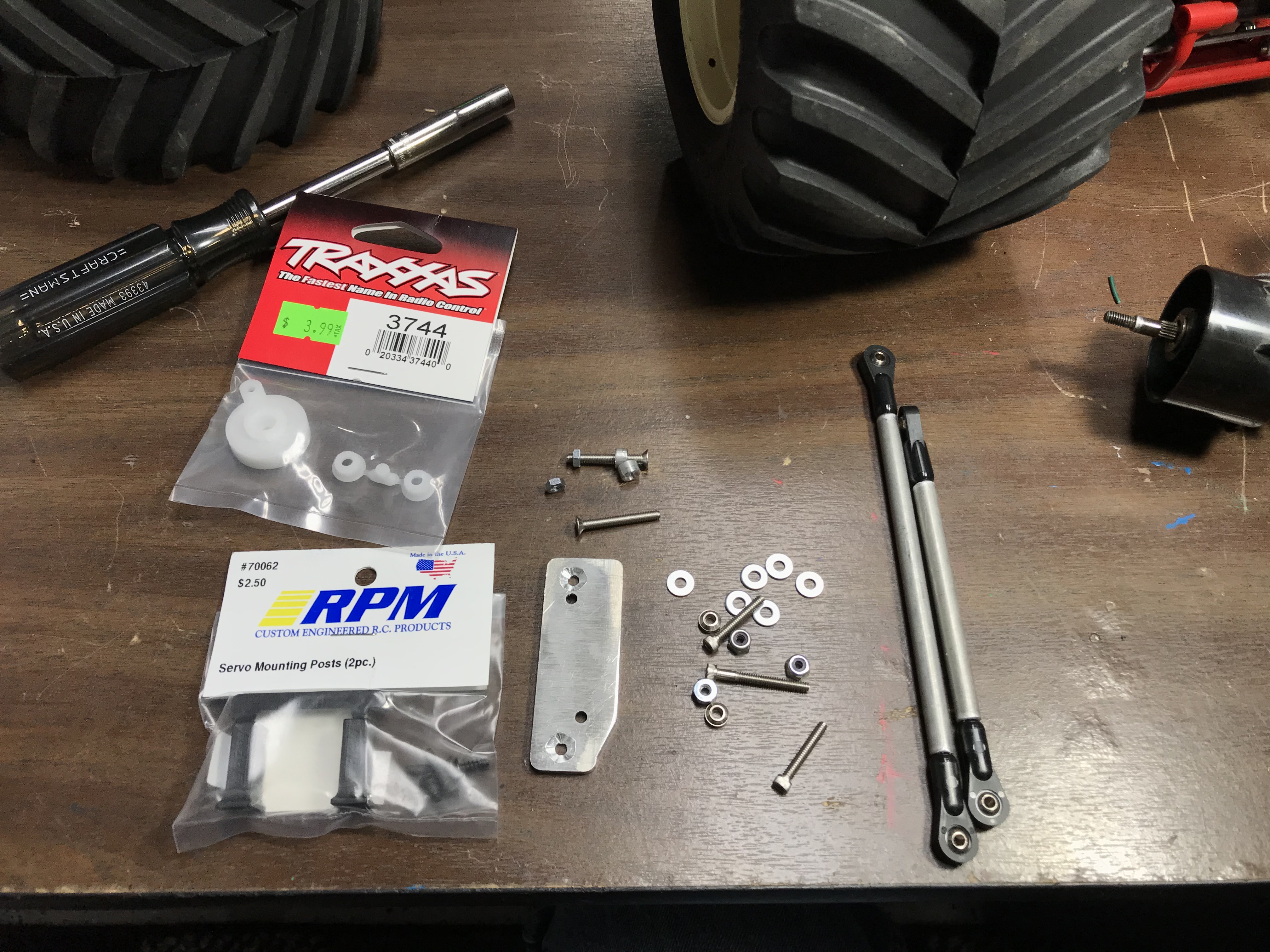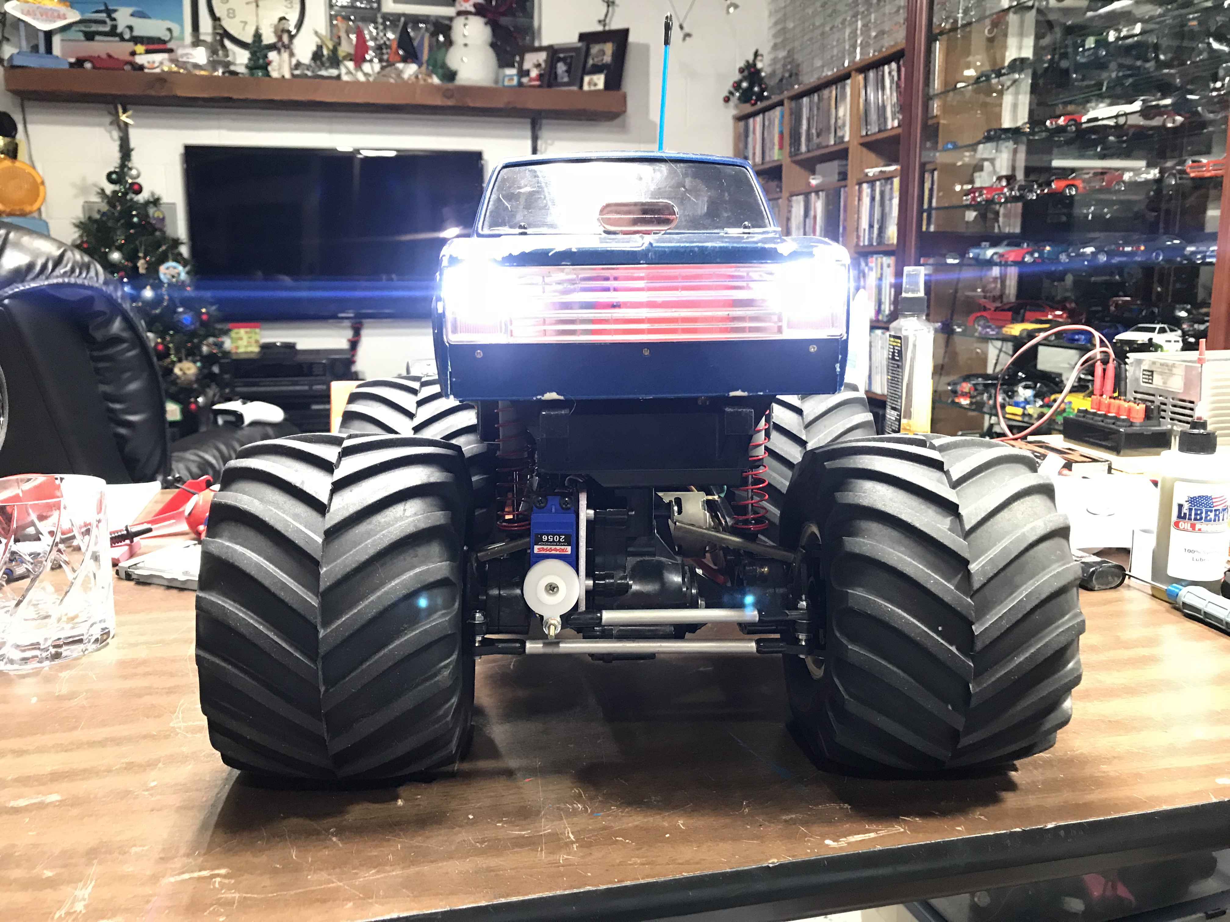 I knew I would be modifying the truck when I got it so saving a few bucks up front would be a good idea. I quickly upgraded to an axle mounted server kit for the front, upgraded to T-Maxx oil filled shocks, and added a full ball bearing kit. Oh…and I added LED’s for head lights!