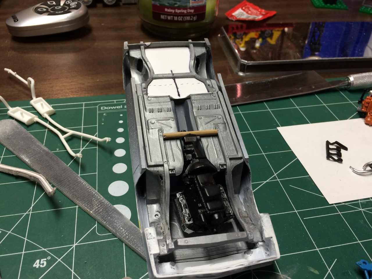 Shortly after, I used the JB weld to fix the VW bus body work and start the body work on the “hemi” charger.