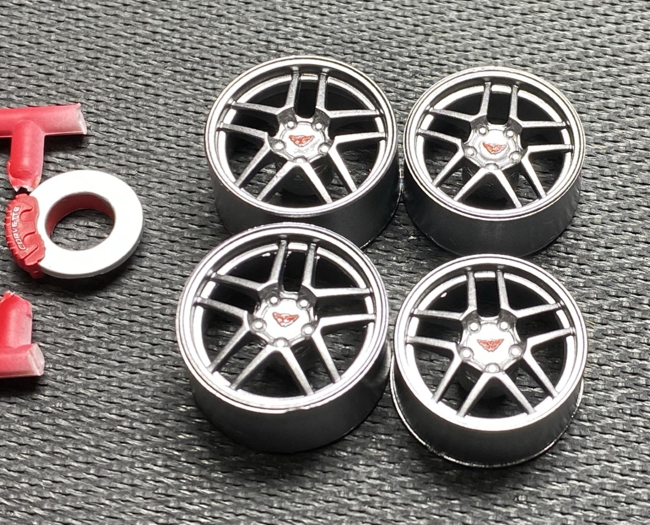 The project with the most progress was the C5 Corvette. I quickly painted the chassis, engine and interior. I also flocked the interior. The body was painted and cleared.