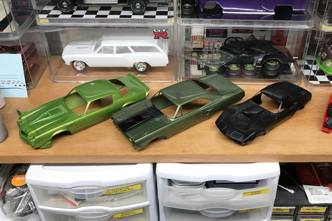 Progress through June was slower than I would prefer but I did make progress! I finished sanding and polishing the clear-coat on the 70 Roadrunner, 79 Camaro and 69 Corvette. Using my new best friend, the Molotow chrome pen, I was able to make quick work of detailing the bug’s head and tail lights.