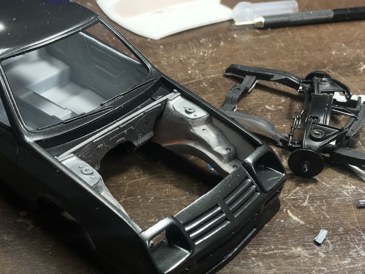 Alas, while digging through my spare parts stash, I stumbled on parts from a ’69 Camaro. I cut out the front sub-frame and found that it fit the narrow width of the Charger.