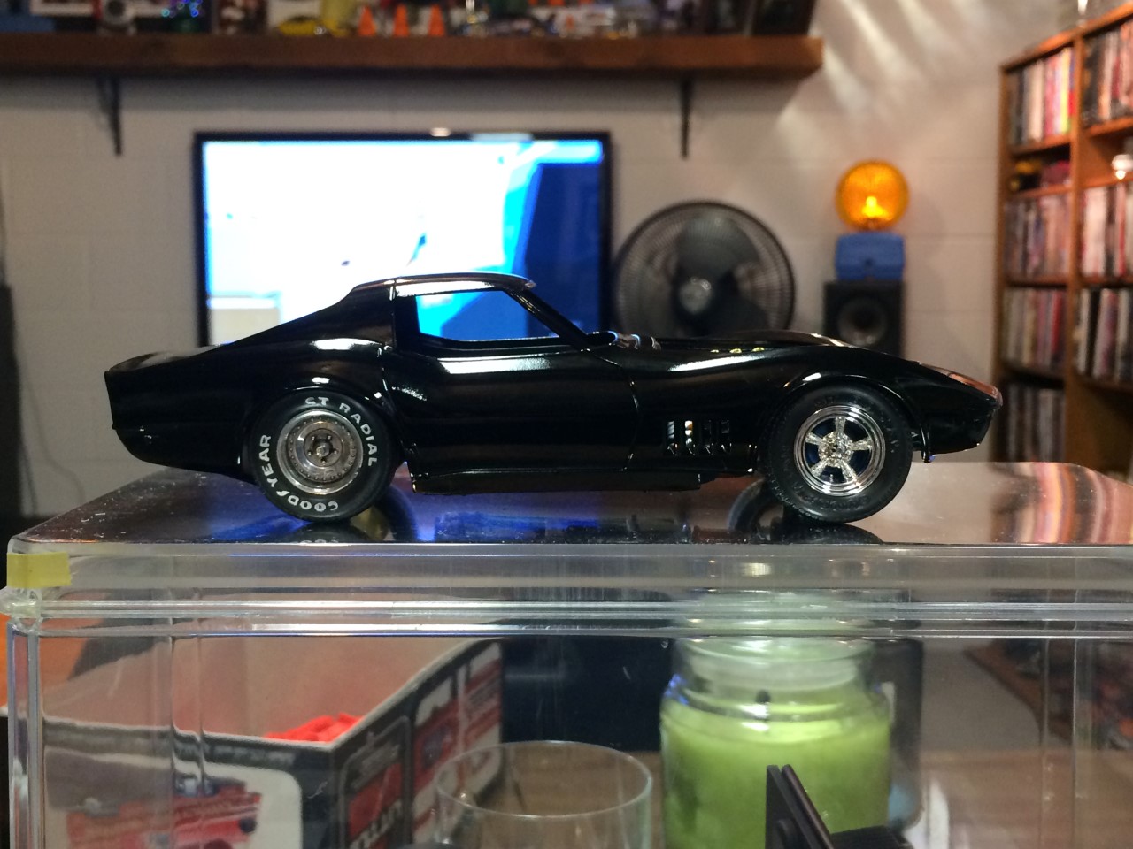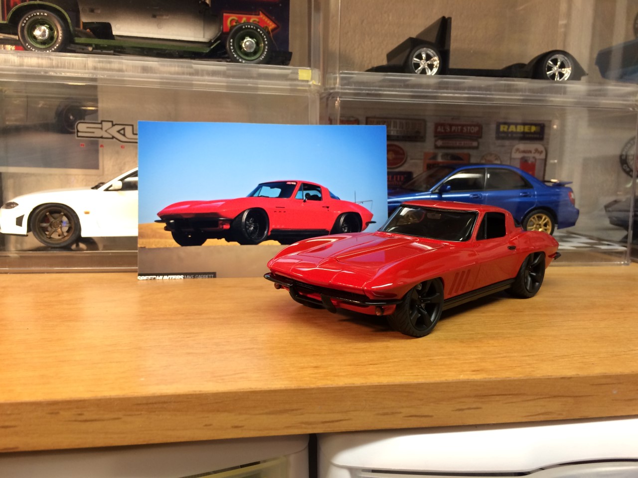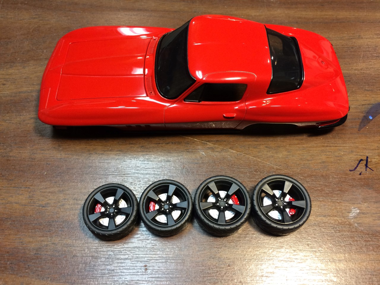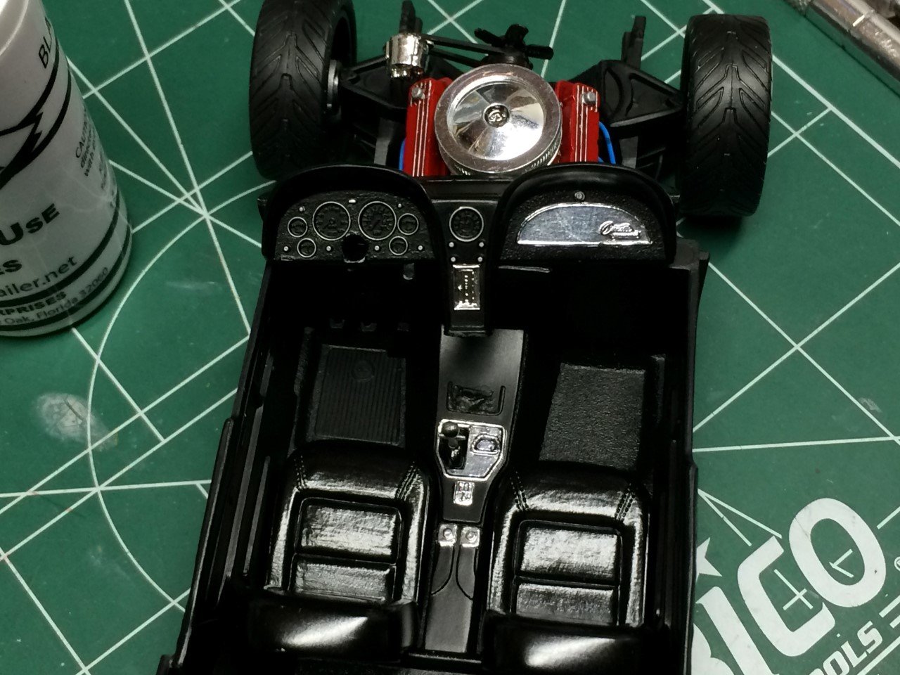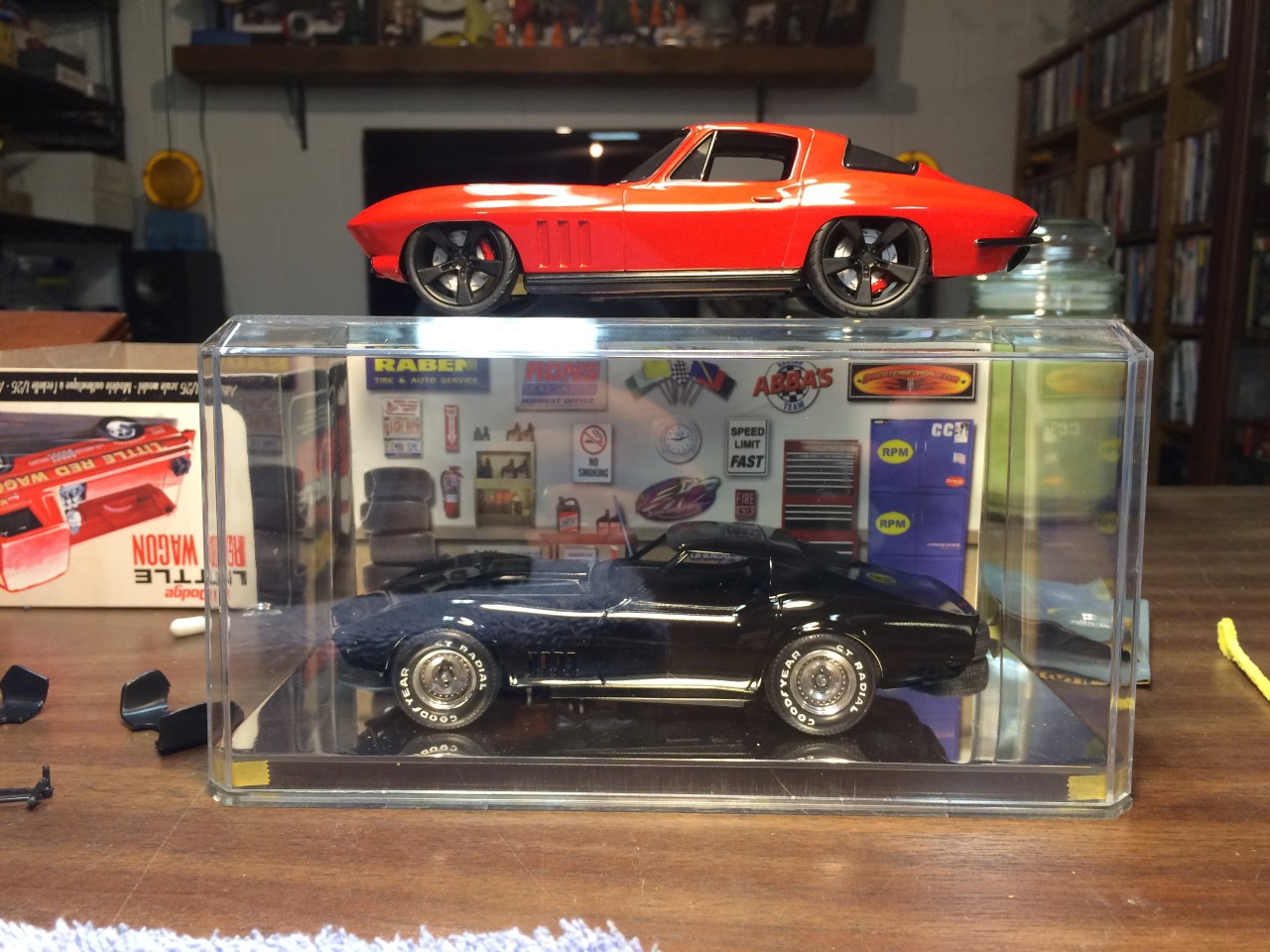 I’m happy to say that I’ve been fairly productive this month! I was able to finish the ’65 Corvette and 928 Porsche projects. I was made progress on the ’68 Corvette. I finished detailing the engine including plug wires as well as set the ride height and attach the suspension. Wrapping up the month, I finished the body work on the VW bus and started spraying color. See the pictures for more details.