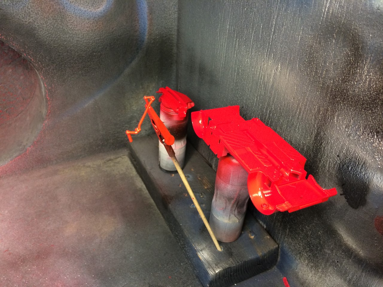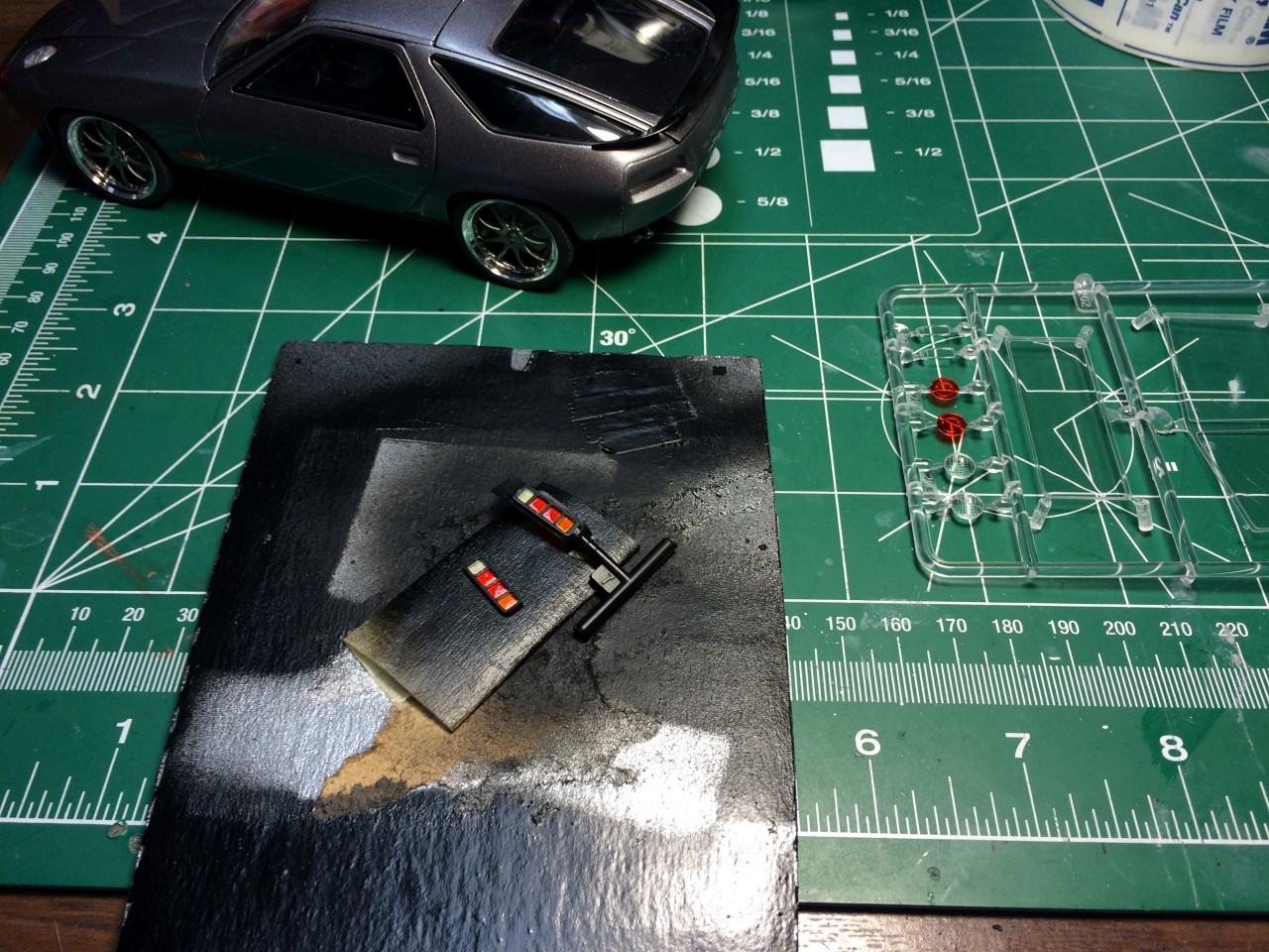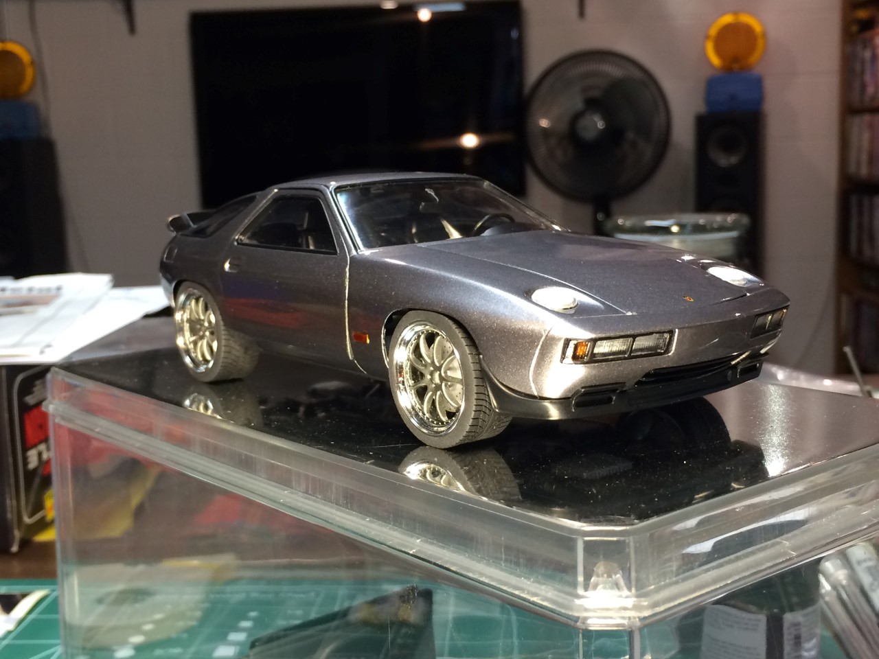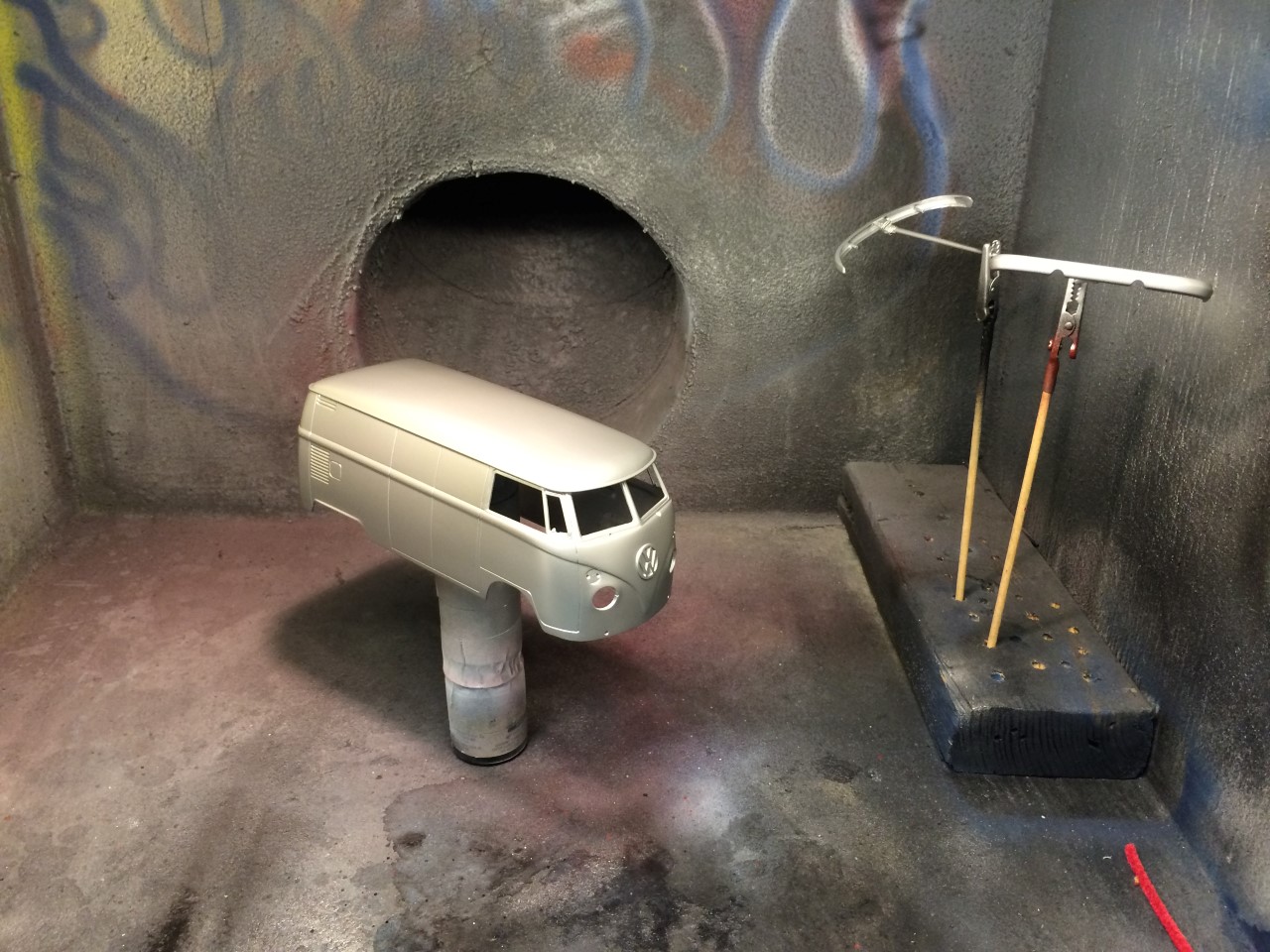 I’m happy to say that I’ve been fairly productive this month! I was able to finish the ’65 Corvette and 928 Porsche projects. I was made progress on the ’68 Corvette. I finished detailing the engine including plug wires as well as set the ride height and attach the suspension. Wrapping up the month, I finished the body work on the VW bus and started spraying color. See the pictures for more details.